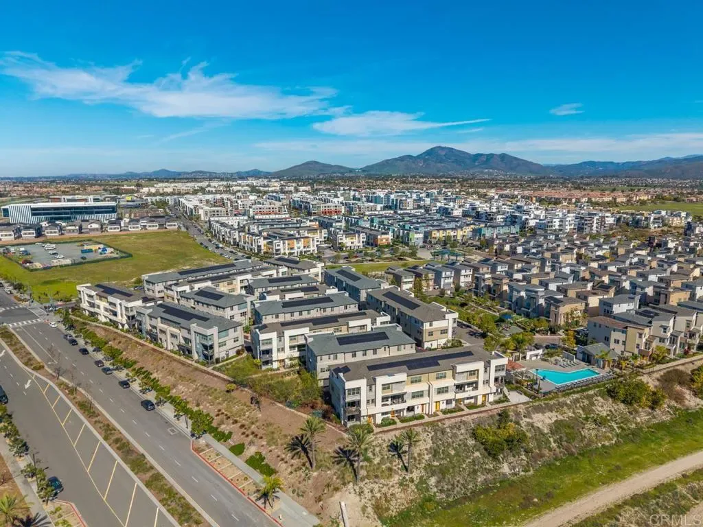 A sought-after Townhouse in the Boulevard at Millenia Neighborhood near the Otay Ranch Town Center with 4 bedrooms, 3 baths *** Be inspired by the open floor plan *** Living area to dining area to a well designed Kitchen with walk-in Pantry *** Central countertop provides additional seating area *** GE appliances sparkle *** The west facing Balcony brings fresh air & sunset views across rolling hills *** Seating area to enjoy the sun & a custom planter box to grow veggies & flowers *** The laundry is conveniently located on the 3rd level with 3 bedrooms *** 1st floor has a one bedroom suite with bathroom *** 2 car garage (notice the tankless water heater)*** Solar system to support air-conditioning & electric energy. Schools, Churches, Shopping & Professional services complete this Village-style living *** OPEN HOUSE 3/21/2026 SATURDAY 1PM-3PM