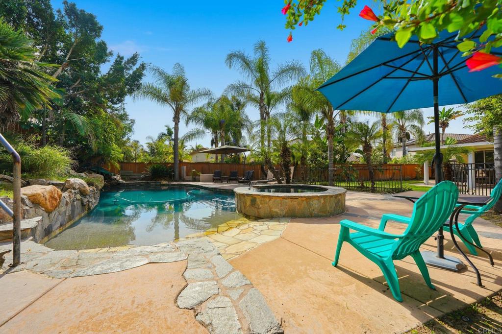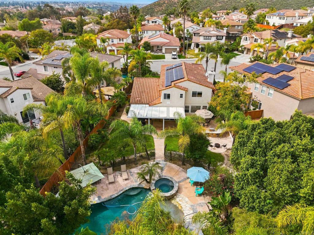 Welcome to Rolling Hills Ranch, one of Chula Vista’s most sought-after communities, known for its beautiful surroundings and no Mello Roos. Tucked away on a quiet cul-de-sac, this exceptional home sits on an oversized 12,964 Sq Ft lot, approximately 0.3 acres, offering privacy, space, and a true resort-style setting. Offering 2,793 Sq Ft of thoughtfully designed living space, this 5-bedroom, 3-bathroom home features a highly desirable layout with a full bedroom and bathroom downstairs, ideal for guests or multigenerational living. The open-concept floorplan is enhanced by luxury vinyl plank flooring throughout the main level, creating a warm and modern feel with seamless flow between living spaces. Step outside to your private backyard retreat, where the custom-designed pool takes center stage. Enjoy a gradual beach-style entry, natural stone detailing, built-in water features, and a slide seamlessly integrated into the landscaped banks. The elevated spa overlooks the pool, while multiple sitting areas and a built-in BBQ island create the perfect environment for entertaining or relaxing year-round. Professionally landscaped, low-maintenance grounds complete this tropical-inspired escape. Additional highlights include fully paid solar, an attached 3-car garage, and convenient access to freeways, shopping, dining, schools, parks, and scenic walking and hiking trails. A rare opportunity to own a home that truly combines space, comfort, and resort-style living in Rolling Hills Ranch.