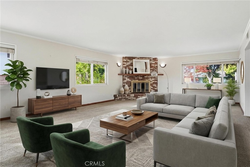 MID-CENTURY RANCH “HIGHLANDS” – Welcome to this spacious single-story home offering timeless curb appeal, classic brick accents, and a warm mid-century feel. Set behind mature landscaping and a brick-lined walkway, this home blends original character with a highly functional layout designed for comfort and everyday living. Featuring approximately 2,618 sq ft, this home offers 5 bedrooms + 3.5 bathrooms + office with a desirable split-bedroom floor plan—ideal for families, guests, or multi-generational living. Two bedrooms are located on one side of the home and two on the other, each connected by Jack-and-Jill bathrooms, creating smart separation while keeping the layout practical and connected. The private primary suite includes an en-suite bathroom and sliding door to patio. At the heart of the home, enjoy a generous living room filled with natural light and anchored by a classic brick fireplace, perfect for gatherings or relaxing nights in. The kitchen offers abundant of custom wood cabinetry, clean counters, built-in shelving and a large oven and cooktop, making it a true central hub for entertaining and everyday meals. French doors and wide windows enhance the indoor/outdoor flow and connect beautifully to the backyard. Additional highlights include a long driveway with excellent parking flexibility and potential Jr. ADU opportunity (buyer to verify). With space, versatility, and classic charm, this is a rare opportunity to own a home that offers both lifestyle and long-term value.