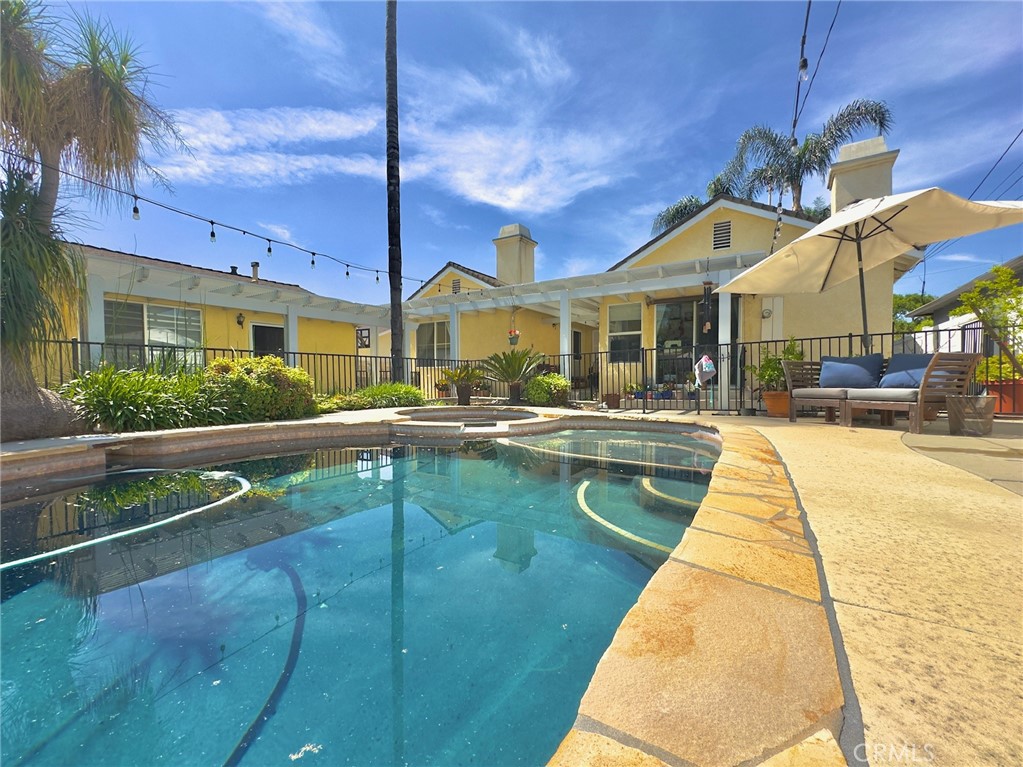 Welcome to 218 Princeton Ave. Located just moments from the boutique charm of Claremont Village, this single-story gem perfectly balances mid-century character with sophisticated modern upgrades. The property features a primary residence with 4 bedrooms and 3.5 bathrooms, plus a detached guest house with its own bathroom, kitchen, flexible living space, and storage area. This layout offers an exceptional opportunity for rental income, a private home office, or multi-generational living. The interior of the main residence features newer thin-plank wood flooring, crown molding, recessed lighting, and ceiling fans throughout the living areas and bedrooms. Upon entry, you are greeted by a spacious living room that flows naturally into a dining area and a dedicated office nook. The well-appointed kitchen provides ample cabinetry and counter space, featuring stainless steel appliances and a granite island with breakfast bar seating, which opens directly to a family room highlighted by a wood-tile finished fireplace. The primary suite offers a private retreat with its own matching fireplace and a spa-like bath featuring dual sinks, under-glow lighting, and a stone-tiled rain shower. Guest bathrooms are equally updated with designer chevron tile and a jetted soaking tub. The exterior of the property is a true private resort, designed for both versatility and entertaining. The grounds feature a private patio, a sparkling pool and spa with a new pump and filter, a built-in BBQ station, and a custom fire pit area. The entire space is surrounded by a combination of brick wall and new vinyl fencing for total privacy. The property also includes an expansive concrete driveway with ample room for multi-car or RV storage. Located within the award-winning Claremont School District, this home is a polished, move-in-ready opportunity.