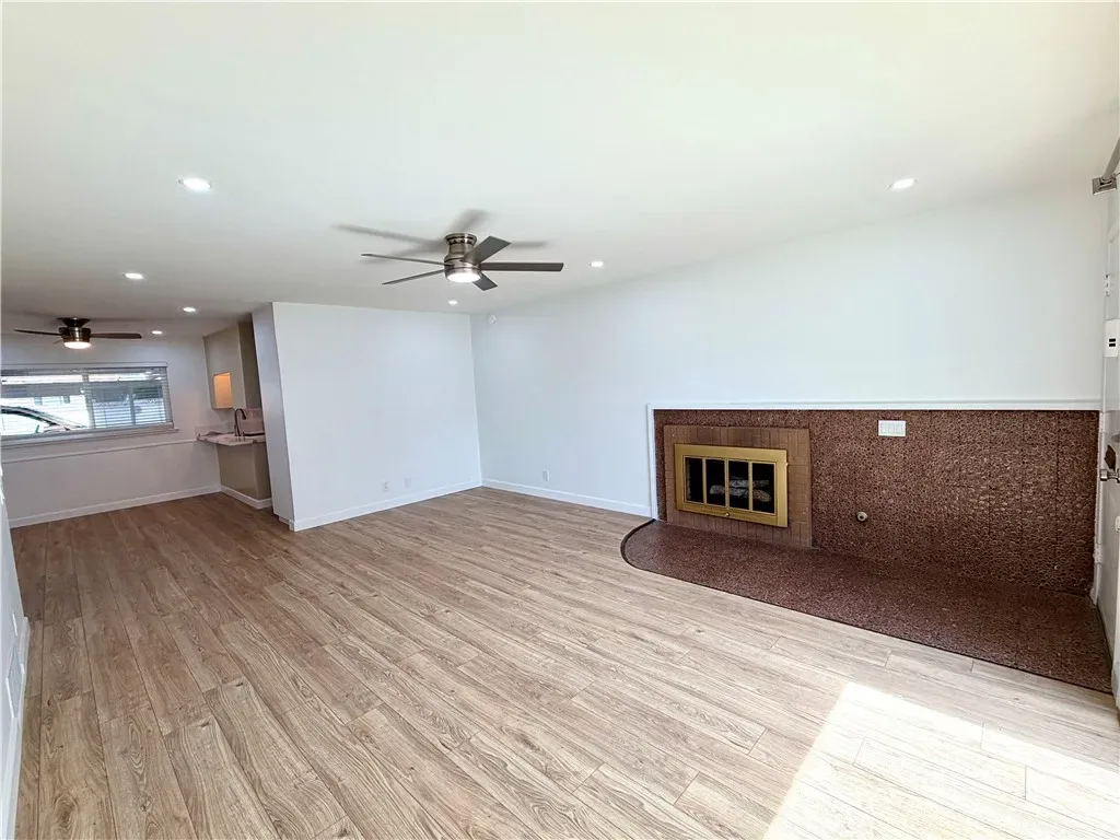 Step inside to discover fresh interior paint, brand-new vinyl flooring throughout, new dual-pane windows, and a fully updated kitchen featuring quartz countertops and new appliances. The functional layout includes spacious bedrooms, nice floor plan with oversized living room w/ fireplace, well-appointed bathrooms, and convenient in-unit laundry hookups.
