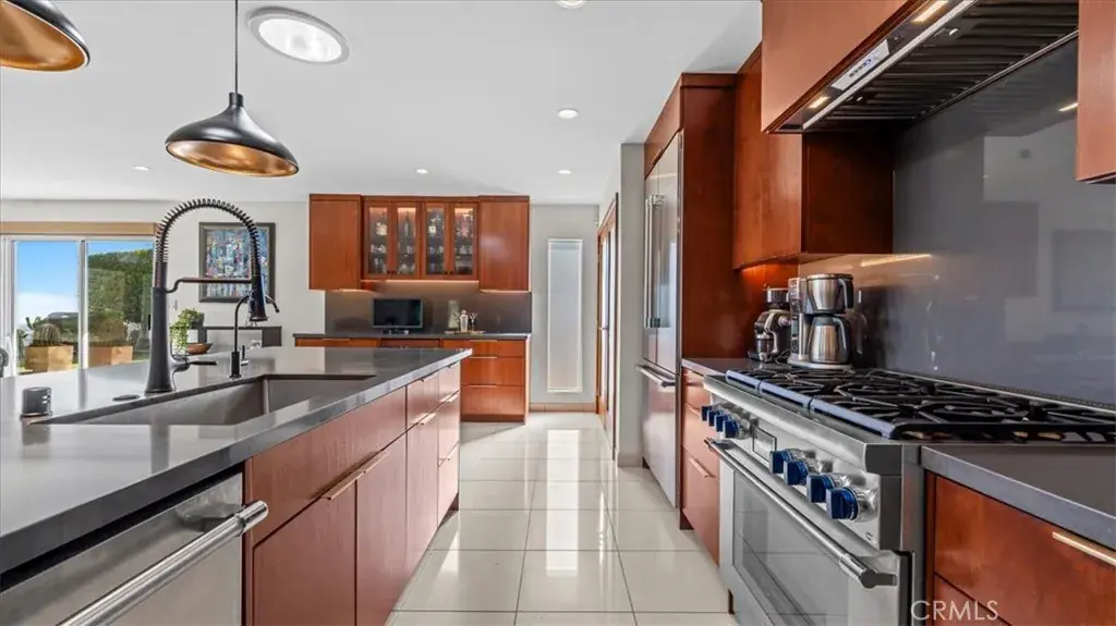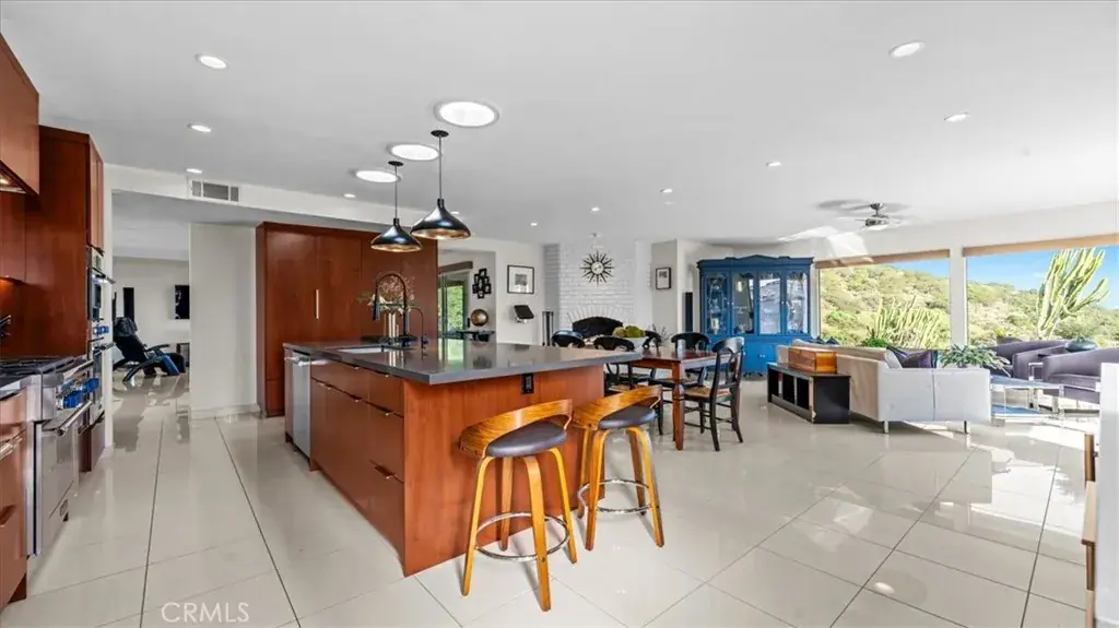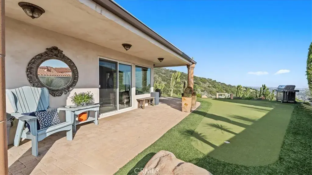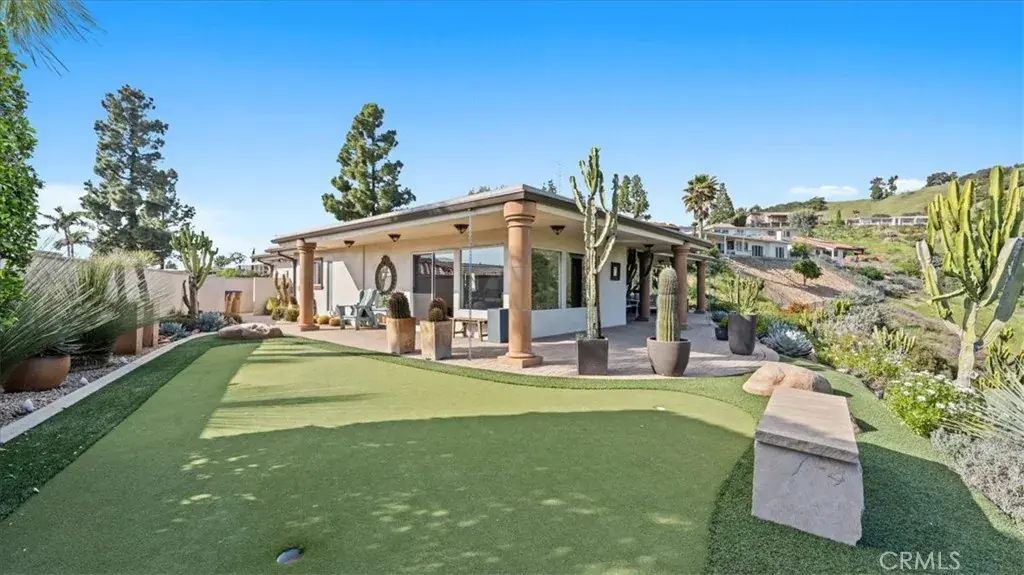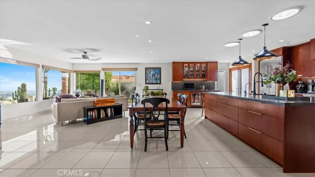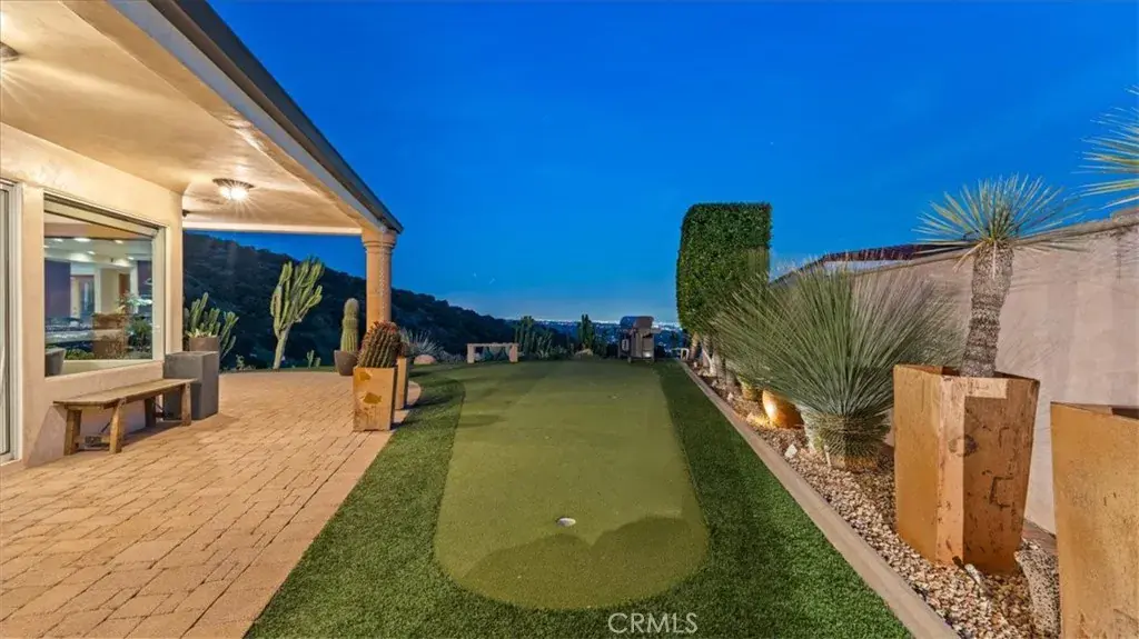 Perched within the prestigious hillside enclave of Claraboya, this contemporary European-inspired single-story residence offers an extraordinary blend of architectural refinement, thoughtful renovation, and sweeping natural vistas. Designed to embrace both comfort and sophistication, the home unfolds with expansive open living spaces, walls of glass, and an effortless indoor-outdoor flow that captures canyon views by day and sparkling city lights by evening. At the heart of the residence, a recently remodeled kitchen reflects both artistry and function. Custom mahogany cabinetry, sleek quartz surfaces, and a full suite of professional-grade Thermador appliances create a setting that will inspire any culinary enthusiast. A generous center island anchors the space, inviting conversation and connection. Whether hosting an intimate dinner or a lively gathering, this kitchen was designed to perform beautifully. The adjoining living and dining areas are bathed in natural light and framed by panoramic windows that celebrate the surrounding hills. Large format tile flooring enhances the modern aesthetic while maintaining a sense of warmth and continuity throughout. The single-level floor plan offers ease and flexibility, with spacious bedrooms, beautifully appointed baths, and a luxurious primary suite complete with a spa-style shower and a substantial custom wardrobe room. Outdoors, expansive patio spaces invite year-round enjoyment. A covered terrace, manicured grounds, and a private putting green create an exceptional setting for entertaining or quiet reflection. The views stretch across canyons and toward distant city lights, offering a daily reminder of the home’s elevated setting. Claraboya is cherished for its proximity to the Claremont Wilderness Park and Thompson Creek Trail, where hiking, cycling, and morning walks are part of everyday life. Just minutes below the hill, the vibrant Claremont Village offers acclaimed restaurants, boutique shopping, coffee houses, and the cultural enrichment of the Claremont Colleges. Convenient access to the 210 freeway provides a seamless commute to Los Angeles and surrounding employment centers, while Ontario International Airport is within easy reach for frequent travelers. This is more than a home. It is an opportunity to experience one of Claremont’s most sought-after neighborhoods, where natural beauty, architectural quality, and lifestyle converge in remarkable fashion.