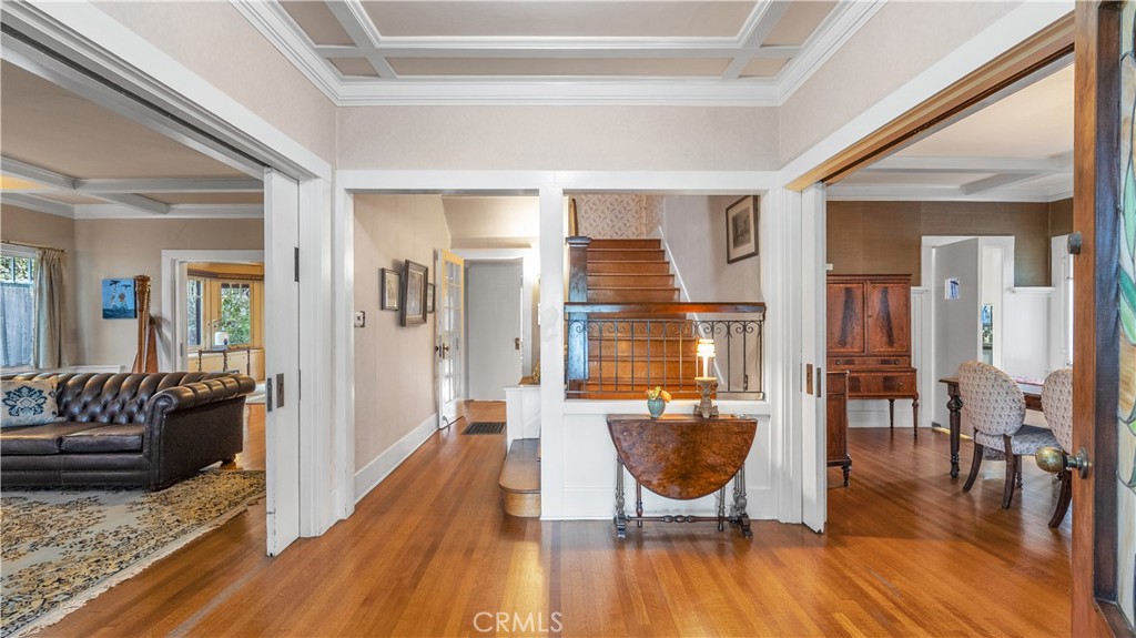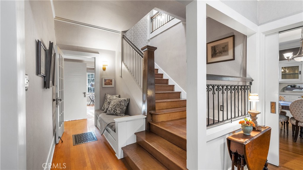 STATELY GRAND CALIFORNIA CRAFTSMAN STYLE HOME WITH GUEST HOUSE ADU. Iconic Greene & Greene Architectural Model Design, per State of California Historic Resources Inventory Survey. Prime locale across from Memorial Park that has front row seating for the July 4th Parade and additional neighborhood festivities. Originally built by William Stover and later owned by the Claremont McKenna College family. Wondrous wrap around porch and porte-cochere grace the front elevation of this magnificent property. Beautiful oak hardwood flooring, multiple built-ins, sliding pocket doors, etc. Central air and heating. Main house includes 4 Bedrooms + Study + Office + Den. Guest House ADU includes a Bedroom & full Bath. Lush foliage and tall mature trees provide a forest like tranquil and picturesque setting. Seldom does a unique residence become available in Claremont’s most coveted Claremont Village locale. Long driveway leads to the rear separate guest house and 2-car garage. Convenient to The Claremont Colleges and famed downtown Claremont Village shopping & more. This home would be a prime candidate for Mills Act property tax savings!