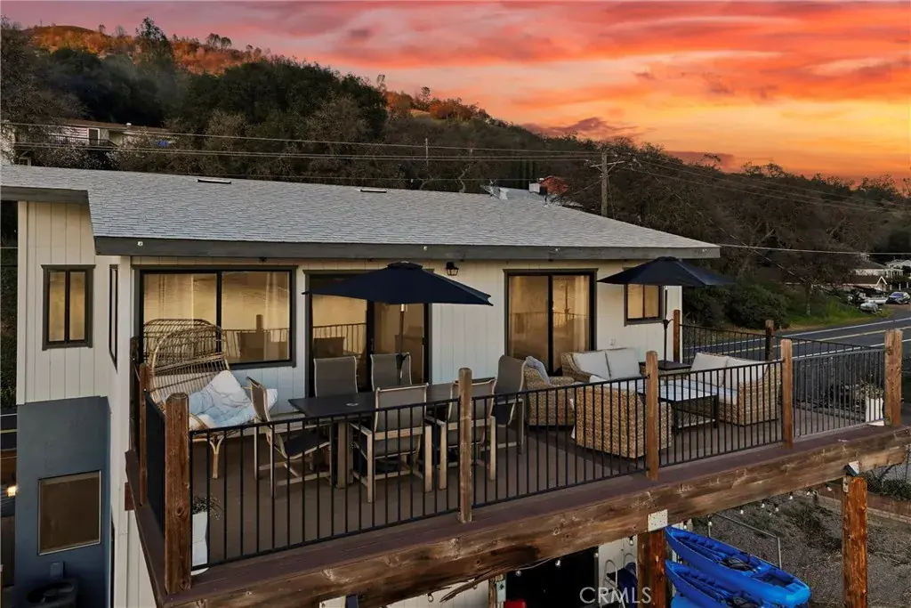 Just bring your boat! This turn-key 3bed/3bath LAKEFRONT home on the shores of Clear Lake is all ready for summertime, complete with a fresh renovation. Designed with a classy modern touch, this waterfront getaway features solid hardwood flooring, fresh light paint, open kitchen with quartz slab counters, and tons of windows all facing out over the water and Mt. Konocti for some of the best views around from sunrise to sunset. Large back deck off of the living area for entertaining plus a lower covered patio to walk right out onto your private pier and newer dock (with steel pilings!) Upper level includes the primary bedroom/bath, living area, kitchen & guestroom/bath. Entry level presents a second living room/game room with the third bedroom and full bathroom & laundry. Could be converted back into garage if needed in the future. Just a perfect set up for the entire family or for short term rental investment. Gorgeous (professionally staged) furniture & decor to be included for fair offer. Sale includes vacant lot across road (bonus parking/storage) and even a boat launch & beach area a few homes down with NO HOA costs. Paddleboard right off the beach/dock, absolute gem of a lakefront home!