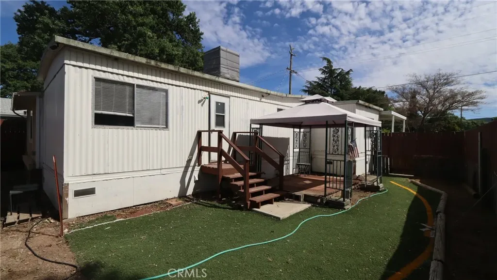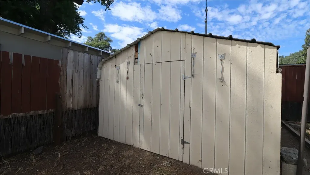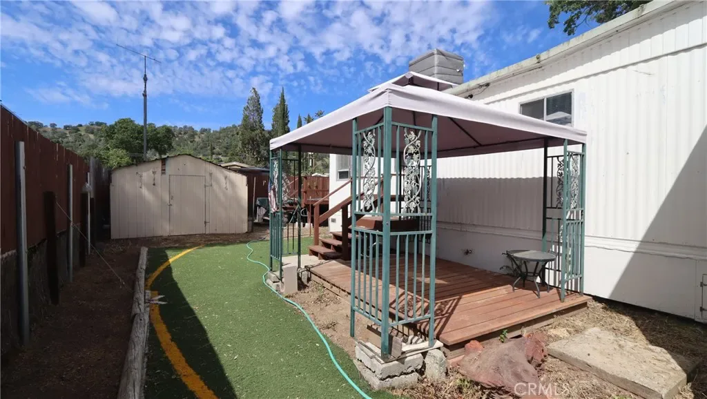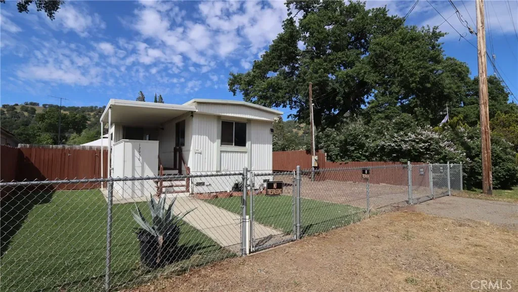 Easy Living Near the Lake with Room for All Your Toys! Set on a fully fenced, level 4,700 sq ft lot, this two bedroom, one bath single wide manufactured home with a built-on bonus room offers comfortable, low-maintenance living just minutes from Clear Lake. The 820 sq ft layout is functional and inviting, with a covered front porch and covered side patio—perfect for outdoor dining, relaxing, and enjoying the peaceful natural setting. The property is set up for fun and flexibility, featuring an above-ground pool with access decking, RV hookups with cleanout, and secure off-street parking with plenty of space for a boat or RV. A storage shed in the backyard adds extra convenience. Located within a 10-minute drive to a boat ramp and close to fishing, hiking, and local wineries, this property is ideal as a full-time residence, retirement retreat, or vacation rental. Simple, versatile living with everything you need to enjoy the lake lifestyle.