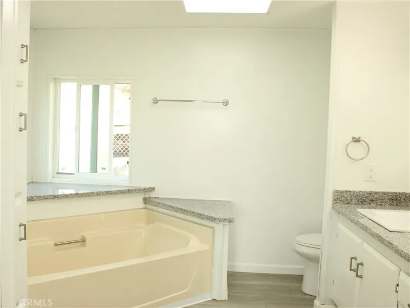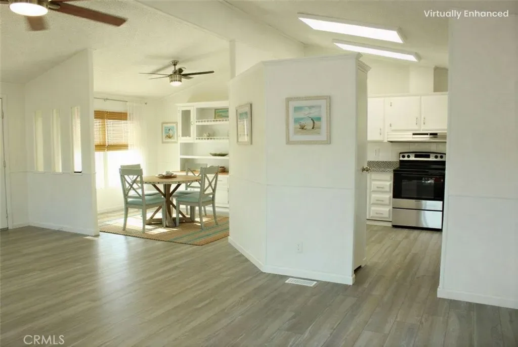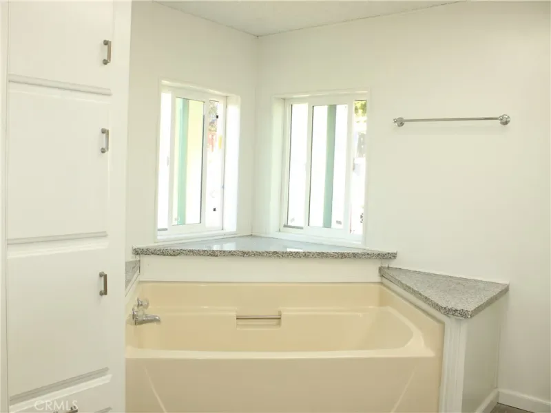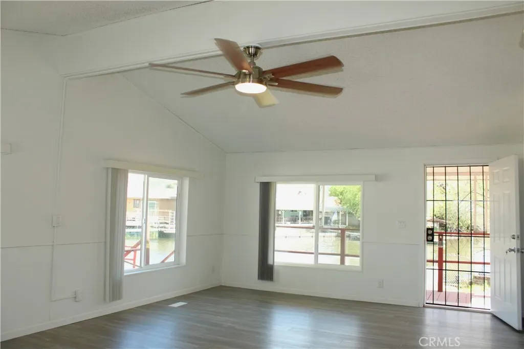 Inside, the spacious two-bedroom, two-bathroom layout is bright, clean, and ready for immediate enjoyment. The open-concept boasts vaulted ceilings in primary living area. Natural light flows from the large windows facing the water views, making the home feel even more expansive. Kitchen is complete with granite counters, cabinets and matching new appliances. Brand new flooring and paint. Primary bathroom has walk in shower, soaking tub, and double sinks. New double-pane windows giving extra insulation. A peaceful neighborhood vibe that feels worlds away from the hustle and bustle.