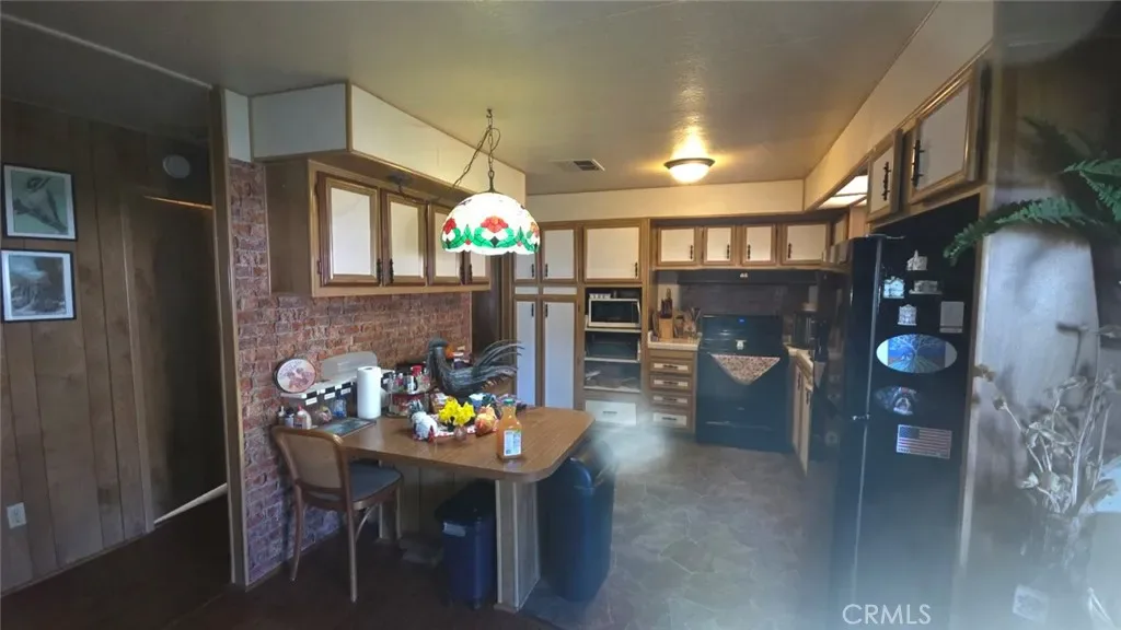 This well-maintained and clean 2-bedroom, 2-bath manufactured home features a spacious open living room with a vaulted ceiling that creates a bright and airy feel. The walk-through kitchen includes a convenient breakfast bar, perfect for casual meals or visiting with guests. The primary bedroom offers a large closet and its own private bathroom, providing comfort and privacy.