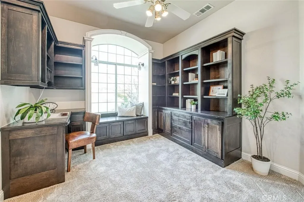 A dedicated office with functional built-ins and a versatile bonus room provide flexibility for work or recreation.