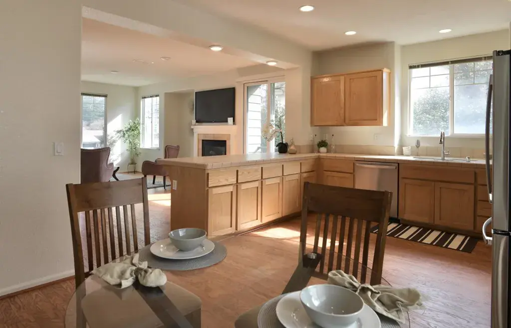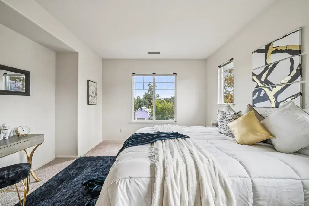 Price reduced on this end unit tri level townhouse with a very thoughtful and contemporary floor plan and large windows throughout ushering in an abundance of natural light. An open concept family room with cozy fireplace, breakfast nook, and kitchen with all brand new GE appliances including a refrigerator, stove, dishwasher, and microwave are perfect for entertaining on special occasions or relaxing alone. The upstairs has three spaciously appointed bedrooms including an en suite primary with a large walk in closet, two additional bedrooms, bathroom, and conveniently located laundry room on the same level. The lower level has a bonus room that can be used for a variety of purposes including a private home office, gym, or guest bedroom. An attached two car garage has its own private entrance and ample space for storage. Recent updates include: new refrigerator, stove, dishwasher, microwave, new electric HVAC, new carpets, and refinished wood flooring. Location, location, location! Just minutes to dozens of restaurants, vibrant and charming Todos Santos Plaza, shopping centers, recreational parks, public transportation, and freeway, for an easy commute.