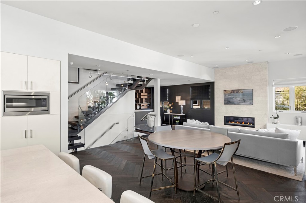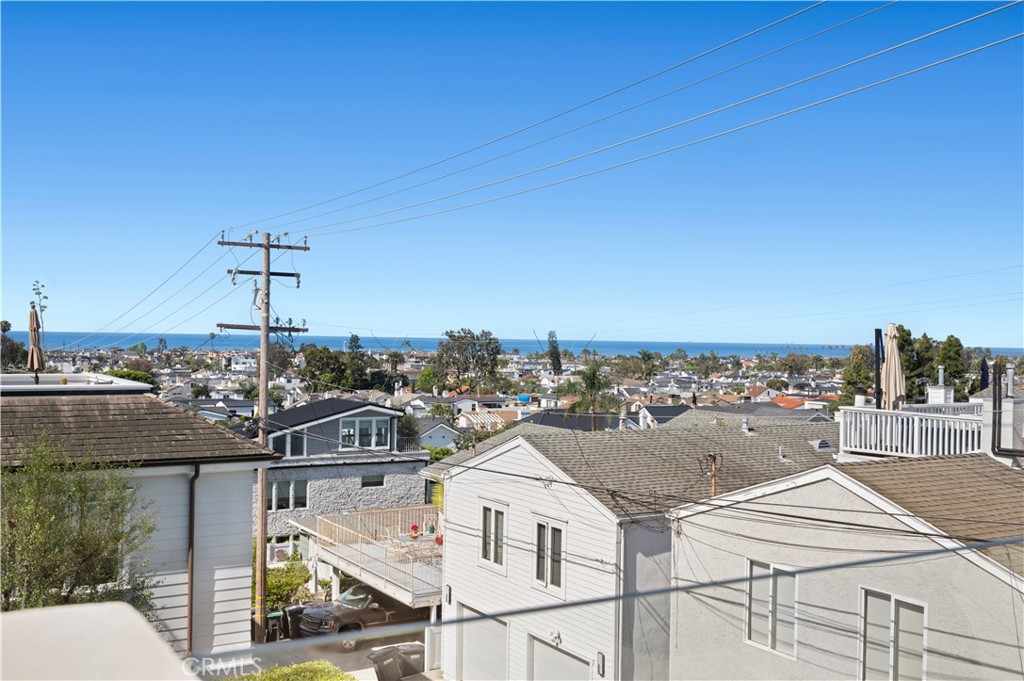 In the coveted Flower Streets, this custom 3-bedroom, 3.5-bath, fully furnished, residence crowns an idyllic 45-foot-wide corner lot with sweeping views of the Pacific Ocean, Fashion Island, and the Pelican Hill Golf Course. An architectural showpiece, the home is defined by its dramatic 3-story steel, wood, and frameless glass staircase, a striking centerpiece that sets the tone for refined living throughout. Hardwood herringbone flooring carries a timeless elegance across each level. The main living level unfolds into a spectacular great room with 10-foot ceilings, anchored by a floor-to-ceiling marble fireplace. Host in the custom serving area complete with ice maker, wine and mini-fridge, or a chef’s kitchen with impressive marble and limestone countertops, a glass tile backsplash, a professional Thermador range refrigerator/freezer. Expansive sliding glass doors open to a private balcony, blending indoor and outdoor living. Also on this level are a sunlit guest suite and a designer powder room. The upper level is devoted to a grand primary retreat, where walls of closets and a spa-inspired bath evoke luxury at every turn. A spacious deck offers a private jacuzzi and unrivaled panoramic vistas. On the entry level, a guest suite with full bath, a large laundry area, and a garage plus double carport adds both comfort and convenience. Smartly designed with Nest-controlled climate, integrated iPhone-controlled speakers, and thoughtful details throughout, this home offers the perfect balance of modern sophistication and timeless coastal style.