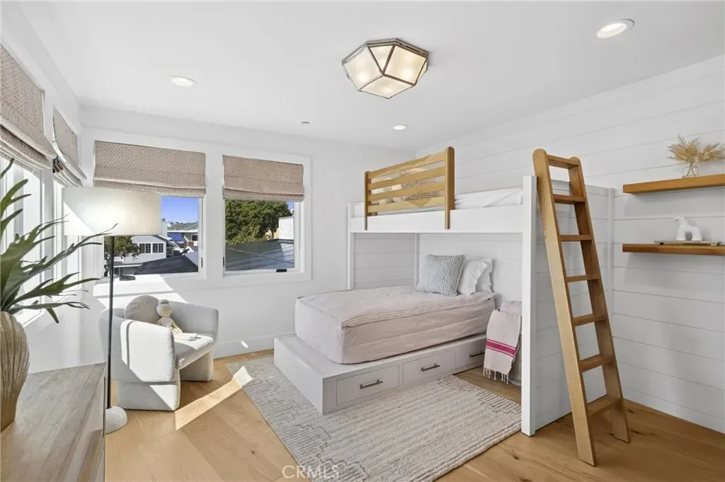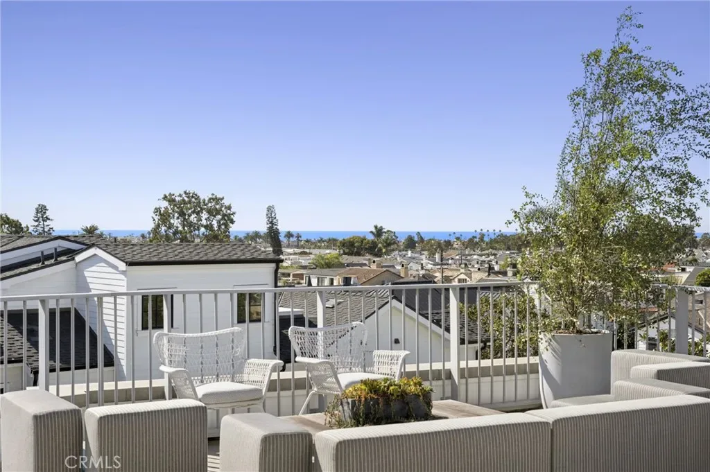 On an elevated over-sized 40′ lot in a coveted location of the Village, this masterfully crafted residence was built in 2021, and stands as a bespoke creation by Design Path Studios and Darci Goodman Design, an architectural triumph that redefines coastal living. A bold vision reflects a commitment to premium materials, spatial ingenuity, and design-forward thinking that goes far beyond the conventional including a unique private yard. Interior finishes include: hardwood flooring, designer tile, curated wallpaper, shiplap detailing, and extensive built-in storage. Walls of glass surround the living room, highlighting open beam ceilings, a fireplace with custom mantel, and integrated built-ins. Architectural elements and natural light combine to create a warm yet elevated atmosphere. The exquisite kitchen showcases marble countertops, a six-burner cooktop with convection oven, wet bar, dual fridge drawers, built-in shelving, and an oversized island with breakfast bar. Disappearing glass doors open to a central courtyard, blending indoor and outdoor living with effortless elegance. The main level also features two bedrooms, one with custom dual built-in bunks, alongside a full bath, powder room, mudroom, and laundry room. Every space reflects thoughtful planning and premium material selection. The upper level includes a versatile bonus room suitable for a secondary family room, game room, or creative studio. Two additional bedrooms share a guest bath with dual sinks, soaking tub, and separate shower. The primary suite features soaring ceilings, clerestory windows, extensive storage, and a spa-inspired bath with freestanding tub, multi-head glass shower, dual vanities, privacy commode, and a private viewing balcony. The top level is a glass-wrapped entertainment haven with built-in fridge, sink, high-top viewing bar, indoor countertops, and a dumbwaiter servicing all levels. Bifold doors open to a massive rooftop deck with panoramic views of the ocean, city, and hills. Additional features include a finished garage with sink and storage, tankless water heater, water filtration system, and solar-powered home energy for uninterrupted living. Live the Corona del Mar lifestyle, with proximity to community parks and elite amenities, including premier shopping, exquisite dining, world-class beaches, blue-ribbon schools, and easy commutes.
