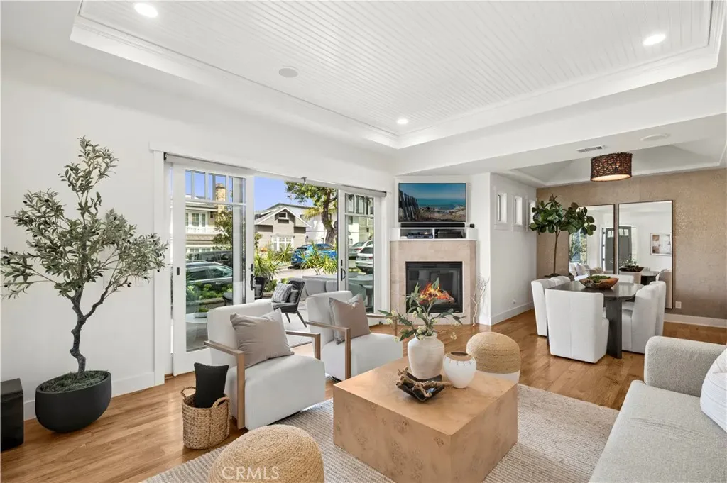 Perfectly positioned in the coveted 200 block just one home off Ocean Boulevard, this exceptional coastal residence offers 4 bedrooms and 4.5 bathrooms. Behind its sprawling 50-foot-wide facade, the home presents a sophisticated sense of scale and volume adorned by soaring high-paneled ceilings, rich wood flooring, and curated designer finishes throughout. Natural light filters across open living spaces, enhancing the warmth and elegance of every room. Highlighted by a fireplace, the great room is framed by disappearing glass doors that seamlessly extend into a front courtyard, blending indoor comfort with coastal ambiance and soft ocean views. Designed for elevated entertaining and everyday luxury, the dining room features a custom designer wallpaper accent wall, adding texture and artistry to the space. The adjacent chef’s kitchen is appointed with sprawling quartz countertops, a six-burner range, Sub-Zero refrigeration, a secondary integrated wall oven, water filtration, instant hot water, and a generous center island with a built-in beverage fridge and breakfast bar seating. Three secondary ensuite bedrooms include a highly desirable main-level en-suite bedroom with a walk-in shower, offering ideal flexibility for guests or extended stays, complemented by a well-appointed laundry room and abundant storage throughout. Spanning the width of the oversized lot, the primary suite showcases expansive views, an oversized walk-in closet, a fireplace dually serving a spa-caliber bath with a soaking tub, multi-head walk-in shower, dual vanity, and a privacy commode. Above, the rooftop deck captures sweeping coastal vistas stretching from the sands of China Cove to the Harbor Entrance, Catalina Island, and the iconic Wedge, offering an extraordinary backdrop for sunset gatherings or quiet coastal moments. A rare two-car side-by-side garage offers prized convenience in this coastal setting. Live the Corona del Mar Lifestyle and elevated coastal living just steps from Ocean Boulevard, local and famed dining and shopping, Blue Ribbon Schools, and world-class beaches.