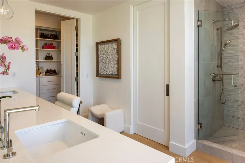 The main level is designed for both elegant entertaining and spacious everyday living, seamlessly blending indoor and outdoor spaces. Expansive doors open to a welcoming front patio, while interior sliding glass walls reveal a serene courtyard—your own private retreat.