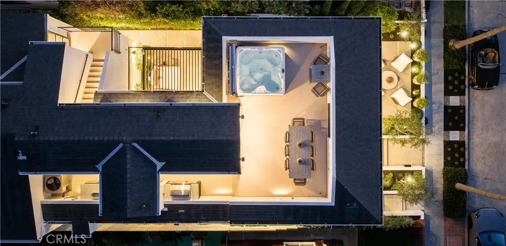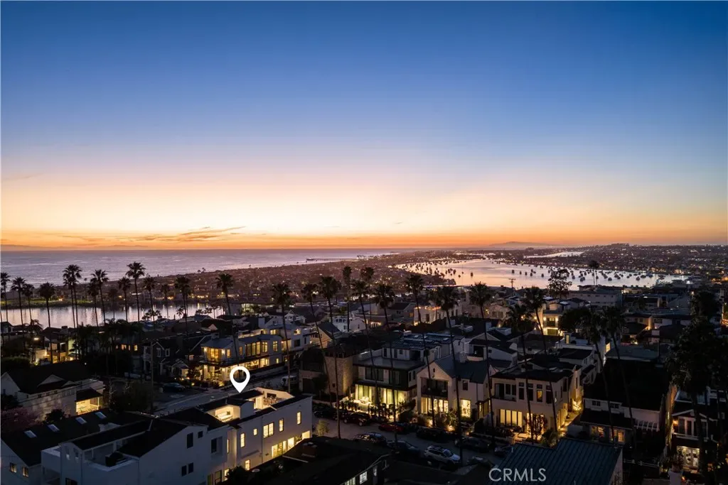 Upstairs, the primary suite offers a true sanctuary, with a generous walk-in closet, a private patio, and a spa-inspired bath. Off the sun drenched hallway, one will find two additional bedrooms sharing a well-designed Jack-and-Jill bathroom. Crowning the home, the third-level rooftop deck offers an exceptional entertaining experience, featuring a covered outdoor lounge with a full kitchen, a private hot tub, and a thoughtfully integrated powder bath. Enjoy sweeping, nearly 360-degree views of the ocean, the harbor, surrounding beaches, and sparkling city lights—an unforgettable setting that stretches to the horizon.