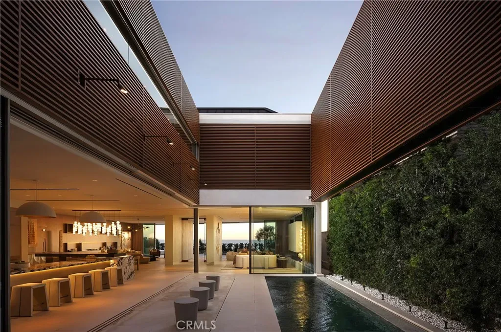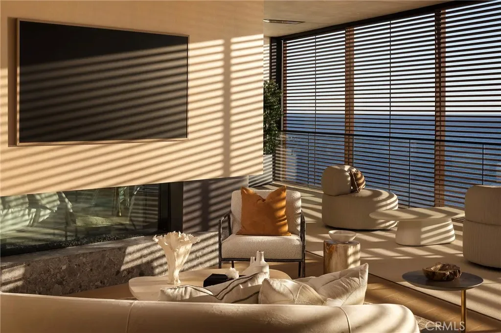 Set along one of the most coveted stretches of Ocean Boulevard, this rare architectural sanctuary is conceived as a place of quiet retreat—where land, light, and sea exist in effortless balance. Sculpted in sun-warmed stone, whispering glass, and open air, the residence unfolds with a calm confidence, its form shaped not to dominate the horizon, but to draw the horizon inward. From the moment of arrival, the home reveals itself gradually. Planes of stone and softened edges create a sense of enclosure and privacy, while carefully framed views pull the eye outward toward the Pacific. Every line is intentional; every transition between spaces is unhurried. The architecture invites pause—allowing light, shadow, and coastal air to become active elements of daily life. The main level is conceived as a continuous, flowing environment where living, dining, and kitchen spaces merge seamlessly. Here, expansive walls of glass dissolve boundaries, opening the home to ocean light and sky while preserving an intimate sense of shelter. The kitchen is both functional and sculptural, anchoring the space as a place of gathering and quiet ritual rather than display. Above, the private quarters offer a deeply restorative atmosphere. The primary suite is designed as a retreat within a retreat, complete with a dedicated sitting area where mornings begin with filtered coastal light and evenings settle into stillness. Secondary spaces are equally considered, each offering privacy, softness, and a connection to the natural rhythms outside. A media room on the second level provides a more inward-focused experience—an enclave for reflection, conversation, or retreat from the day—while the lower level opens into a more relaxed living environment, suited for extended stays, hosting, or multigenerational living. Throughout the home, materials are consistent and restrained, allowing texture, proportion, and light to carry the narrative.