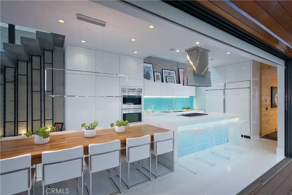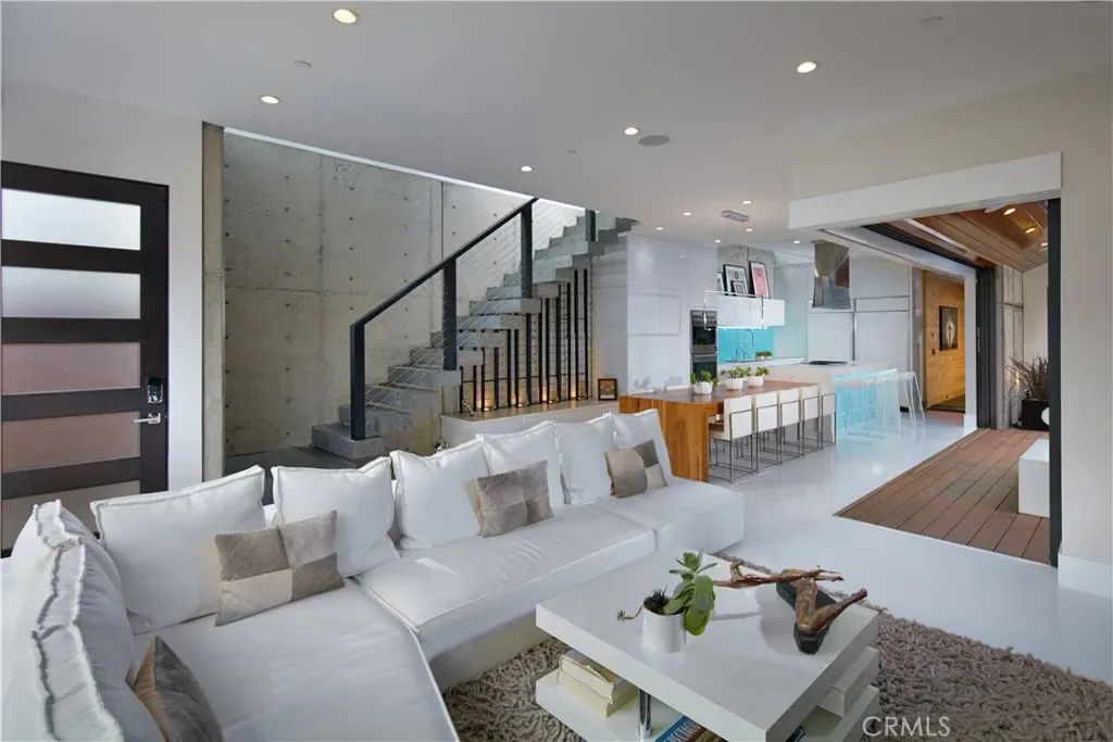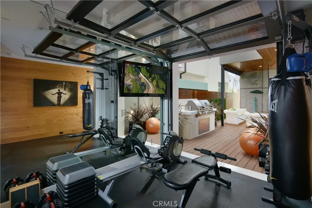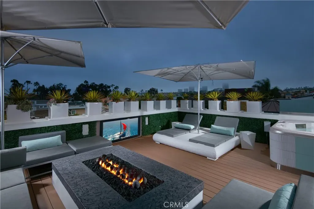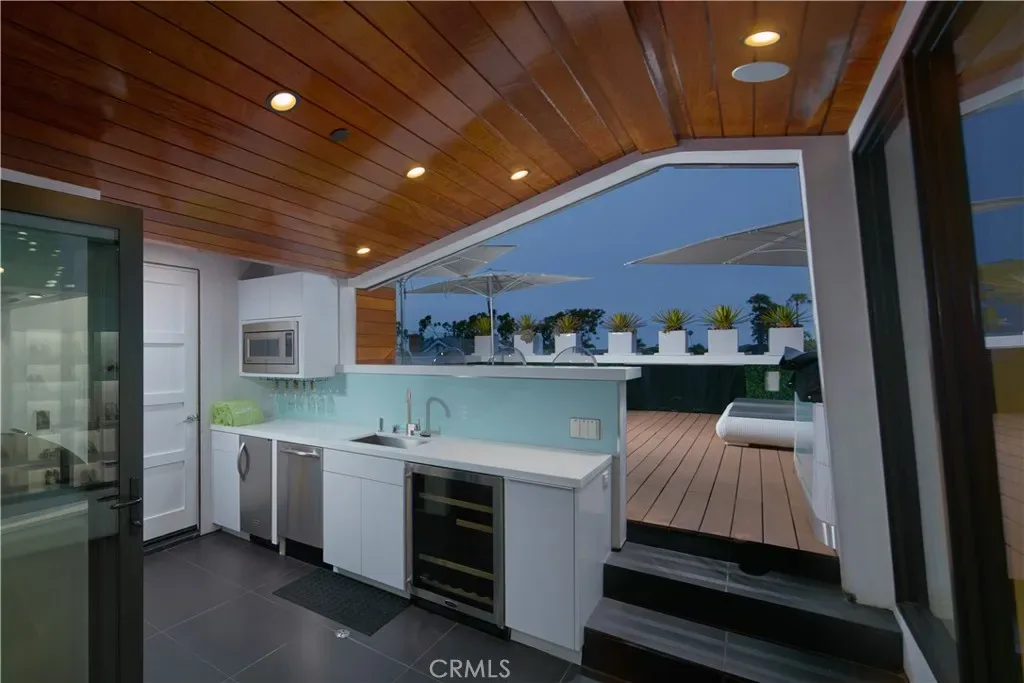 This dwelling abounds with exquisite details and finishwork throughout. Storefront windows reveal a first hint of the refined finishes and fills the interior with an abundance of natural light. Accommodations consist of a primary suite, secondary en suite bedroom, gym area, office/optional third bedroom, a rooftop deck, and two full, two half bathrooms. The primary level boasts epoxy painted concrete flooring with wood-paneled walls, high ceilings, and glass doors that marry the indoors with the outdoors. The gourmet kitchen is outfitted with Caesarstone countertops, touch latch cabinets, a custom wine rack wall, Miele, GE Monogram and Wolf appliances, including an in-counter steamer with hood vent. Completing the main level, is a gym area with a glass garage door and 16-foot glass pocket doors that open to a tranquil courtyard where a fire pit and barbecue area reside. The contemporary floating staircase grants access to the second level which hosts the open-plan primary suite appointed with stacking glass doors to the master balcony, full-height glass wall, walk-in closet, pop-up TV lift, steam shower with rain shower head, and private water closet. The upper level consists of a loft-style office or optional third bedroom with custom built-ins and bi-fold glass doors opens to the rooftop deck playing host to a fully-equipped outdoor kitchen with a barbecue, microwave, ice maker, beverage cooler, and sink with garbage disposal. A central gas fire pit, outdoor shower, half bath, three umbrellas, six-person spa, and distant ocean views make this the entertainers paradise. More offerings of the home include one enclosed garage spot, a covered carport, surround sound system, 65” flat screen TVs, Control 4 home automation that controls lighting, speakers, all window coverings, audio/video, heat, A/C, and radiant floor heat of the first floor. Stunning beaches, tranquil parks, Fashion Island, Balboa Island, dining, and shopping, make this property a true jewel in the quaint coastal village community. 3rd bedroom is open loft, currently used as an office