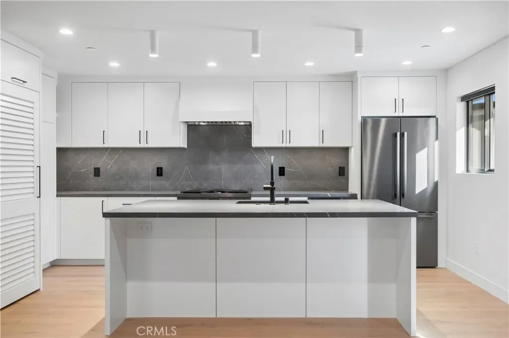 outdoor balcony accessed through sliding glass doors. The kitchen is a chef’s dream with