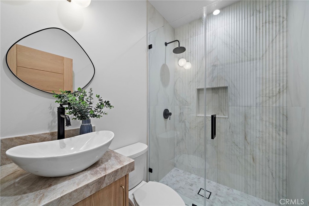 Located in the coveted community of Jasmine Creek, this crisp contemporary single story residence has been meticulously remodeled inside and out. This home was taken down to the studs and offers the highest quality and finest finishes throughout. Spacious open concept living space with a floor plan that excels in easy refined living. As you enter the courtyard to the home you are greeted by a private garden and patio area that leads you to the exceptional custom iron and glass front door. Enter the home to find soaring high volume ceilings and rich white oak hardwood flooring that flows seamlessly throughout. Fabulous kitchen with sleek Taj Majal quartzite counters and a massive center island. Modern Ilve stove and substantial Thermador refrigerator will be sure to delight the new homeowner. The white oak cabinetry was custom built on site and has designer selected hardware and dual pantries. The living area is ample in space and opens up to the private rear grounds of the home. The primary suite also features high volume ceilings and is light filled with a slider out to the back yard. There is a ample sized walk in closet that will accommodate all your needs. The primary bath is a true sanctuary with beautiful floating cabinetry quartzite countertops and designer selected finishes. Spacious walk-in shower and a lovely soaking tub complete the space. There is a sound system throughout the home as well as integrated Wi-Fi. This home has all new electrical wiring and electrical panel, new Pex plumbing in the walls and new underground plumbing. New HVAC system and ducting. All work was done to code and fully permitted by the City of Newport Beach. Jasmine Creek is an exceptional guard gated community that offers six tennis courts, a great clubhouse and a inviting pool area. Conveniently located to nearby Fashion Island shopping center and a multitude of dining and recreation opportunities. Come and enjoy all that the refined and relaxed Newport Beach lifestyle has to offer!
