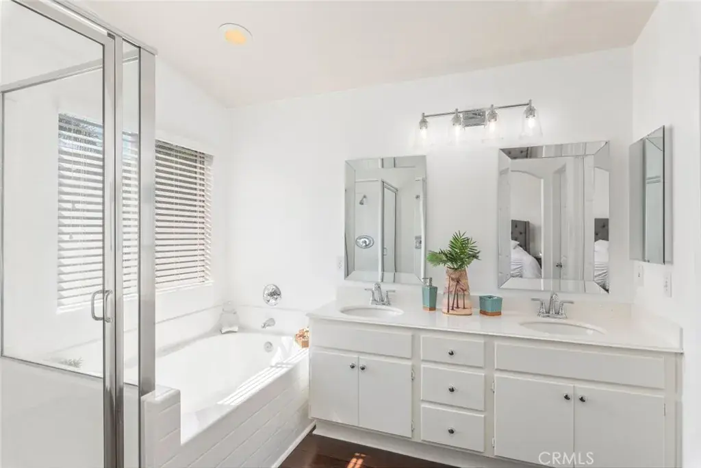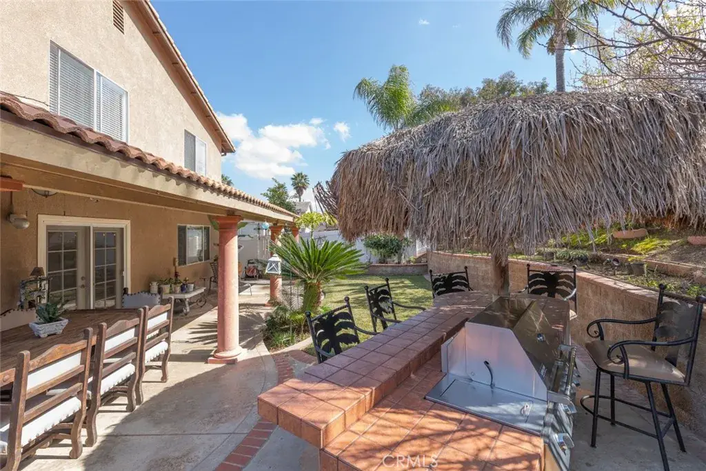 This beautiful 5 bedroom, 3 bath home is located in the prestigious gated Ashwood community of South Corona, offers elegant living spaces, modern amenities, and a serene outdoor retreat, making it an ideal sanctuary for both relaxation and entertainment. As you step inside, you are greeted by a beautiful living room bathed in natural light, setting a warm and welcoming tone for the entire home. The space effortlessly transitions into a large, elegant family room, the perfect setting for gatherings or tranquil evenings by the fireplace. Adjacent to the family room, a dedicated area awaits your formal dining table, promising memorable dining experiences under the subtle glow of stylish lighting. The culinary artist will love in the newly, highly upgraded kitchen, a masterpiece of design and functionality, featuring top-of-the-line stainless steel appliances, farmhouse sink, granite countertops and a generous island with a built-in beverage refrigerator. The downstairs hosts a spacious bedroom accompanied by a full bathroom, offering a private retreat for guests or a versatile space for a office or playroom. The upper level has four large bedrooms, including the primary suite—a haven of relaxation with a newly upgraded en-suite bathroom, complete with a luxurious soaking tub for ultimate indulgence. Step outside to the expansive backyard, where a custom patio spans the width of the house, providing an idyllic backdrop for outdoor living. Under the cooling breeze of ceiling fans, savor al fresco dining with the built-in barbecue, all while surrounded by a vibrant array of fruit trees, including pomegranate, pear, peach, nectarine, avocado, dragon fruit, apricot, guava, lemon, orange and papaya. Additional features included, luxury laminate flooring, new air conditioner and furnace, newer water heater, laundry located upstairs and washer/dryer and refrigerator included in the sale. This home is not just a place to live but a lifestyle, located in a top-rated school district, near parks, hiking trails, the 15, 91 freeways and Foothill Expressway. With over $100,000 in enhancements, including kitchen upgrades and backyard improvements, every detail has been meticulously crafted to ensure unparalleled living. Low HOA fees and a low tax rates. Schedule your private showing today and take the first step toward making this dream home your reality.