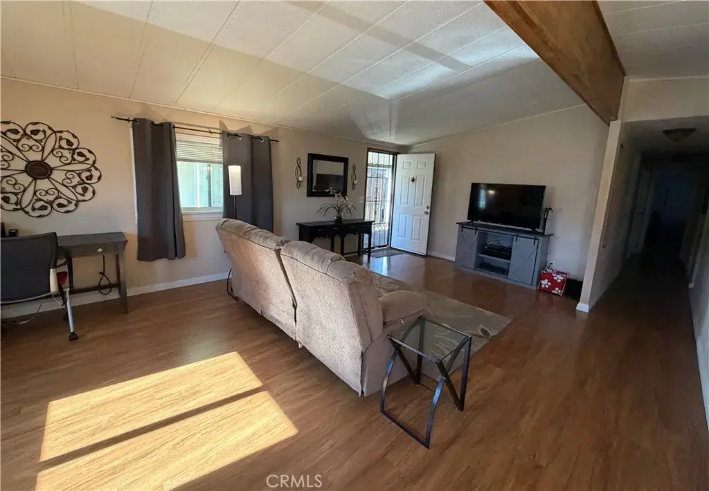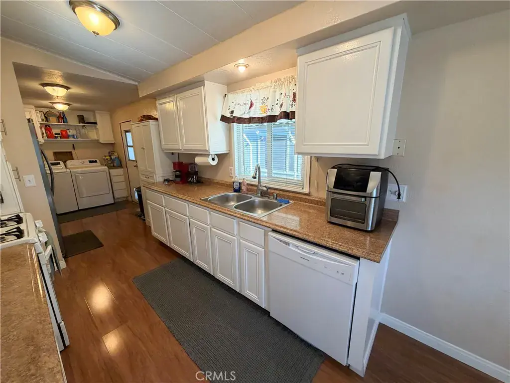 Welcome to Villa Corona, a highly sought-after all-age gated community in the heart of Corona. This charming home offers 1,344 sq. ft. of comfortable living space with 3 bedrooms and 2 bathrooms. Enter through the inviting side porch and step into a spacious living room, perfect for relaxing or entertaining. The living area flows seamlessly into the dining area, which opens to a nicely sized kitchen featuring a dishwasher, oven/range, built-in microwave, and refrigerator. Just off the kitchen is a dedicated laundry room complete with a full-size washer and dryer. The two guest bedrooms are generously sized and share a bathroom with a walk-in shower. The primary bedroom is large enough to accommodate a California king-size bed and includes an en-suite bathroom with a shower/tub combo. Additional features include: Carport parking for up to 3 vehicles, large storage shed with electricity, double-pane windows, updated flooring throughout the living room, kitchen, laundry room, and hallway, central a/c and heating. Villa Corona offers outstanding convenience, located near the 15 Freeway, shopping centers, hospitals, and Centennial High School. Residents also enjoy access to a beautiful clubhouse with a sitting area, billiards room, restrooms, and an outdoor pool and spa. Priced to sell—don’t miss this opportunity. Start packing and make Villa Corona your new home!