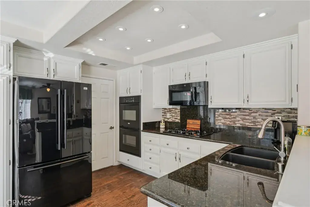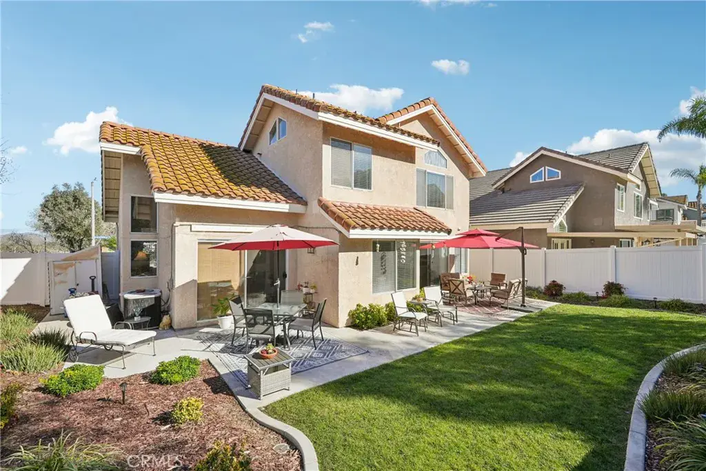 This corner lot home WOWS you from the minute you pull up. Check out that beautiful landscaping- the curb appeal is unmatched and the house is so pretty lit up at night. Stepping inside, you’re greeted by wood look tile throughout the downstairs, vaulted ceilings, plenty of natural light, and a formal living and dining room with a slider to access the backyard. There is a 2nd Livingroom with a whitewashed fireplace and a lovely updated Kitchen that showcases a cozy little breakfast nook, an abundance of white cabinets, granite counters, and black appliances. Cooking for Holidays and other gatherings will be made easy with the double oven and extra counter space. The pride in ownership really shows in this home! The Laundry room and a remodeled half bath are downstairs as well. Upstairs, the massive Primary Suite sits by itself for privacy- there are 2 Closets and a nicely updated primary bath with dual sink vanities, a tiled soaking tub, and a separate tiled shower. The additional 2 Bedrooms are across the hall and they share an adjacent Bathroom with a Shower/Tub Combo and a Single Sink Vanity. The POOL SIZED LOT offers plenty of room for you to stretch out and enjoy your space!. The lush, green grass is welcoming and the mature trees planted on the slope offer a lot of privacy. The side yard has a storage shed and you even get 2 concrete patio areas- perfect for entertaining or BBQ-ing. This Community is 1 exit from OC, making it very desirable for commuters, and the schools are great! Shopping and Dining are minutes away and the best part is that this home has NO HOA AND LOW PROPERTY TAXES! With it being on a corner, there is also a ton of street parking and the Sellers have even installed a leak detection system to save you money on home insurance. This exquisite home is fresh and clean- you don’t want to miss out! Come see it today!