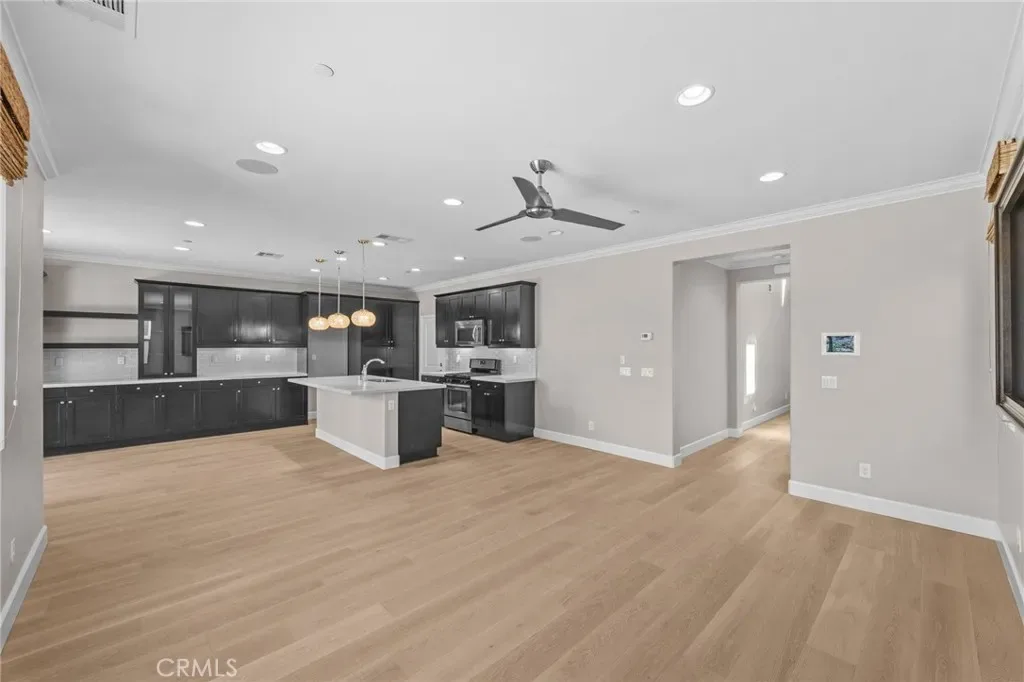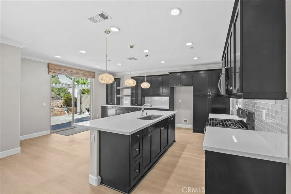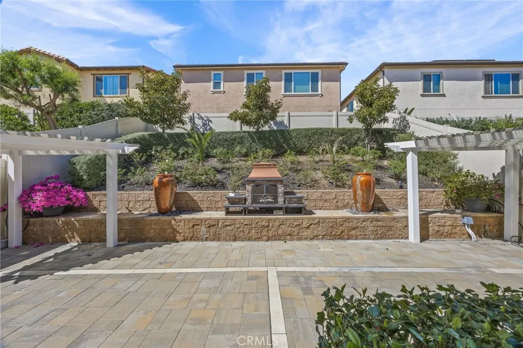 STUNNING! This previous MODEL HOME loaded with designer upgrades and premium finishes is a showstopper! The moment you step inside, the neutral colors and natural light bring a sense of calmness, and a cozy atmosphere. THIS DETACHED HOME HAS IT ALL INCLUDING YOUR OWN PRIVATE BACKYARD! Showcasing exceptional craftsmanship and attention to detail, this residence offers elevated living at its finest. Offering 3 bedrooms and 3 bathrooms, in a well thought out living space, this is the one you will want to call home! The gourmet kitchen boasts high-end espresso built-in cabinetry, upgraded fixtures, recessed lighting and designer pendant lights, gorgeous QUARTZITE COUNTERTOPS and stunning backsplash, beautiful, engineered hardwood floors, STAINLESS STEEL APPLIANCES, and a farm sink. The kitchen is open to the living room perfect for entertaining or relaxing in style. Convenient downstairs 1/2 bath and direct access 2-car garage with overhead storage. Retreat upstairs to the generously sized bedrooms. Primary ensuite has custom tv frame with mount, and a custom designer headboard. Primary bath has DESIGNER MARBLE FLOORING AND ACCENTS, walk-in shower, soaking tub, and huge walk-in closet. Second appointed upstairs bath features a modern vanity with luxury finishes and designer marble flooring creating a cohesive and elegant flow. Upstairs laundry room offers both convenience and efficiency. You will find CROWN MOLDING, HUNTER DOUGLAS CUSTOM SHADES, and CEILING FANS throughout. This unit also has A SECLUDED BACKYARD with tiered hardscaping, a built-in fireplace, and two water features, showcased by a hillside of white roses, and white magnolia trees. Two pergolas situated on each end of the spacious patio gives the illusion of separated spaces for private conversations, or family gatherings. One pergola is wired for 220V if a personal spa is on your wishlist! This one is a must see with too many extras to list. Close to freeways, shopping, and award-winning schools. Low HOA, gated community, solar panels, new A/C, and smart home for effortless living. This exceptional turnkey property combines style, comfort, and sophistication – a rare opportunity to own a former model home with top-tier upgrades throughout. Come explore everything this beautiful home has to offer. An opportunity you won’t want to miss!