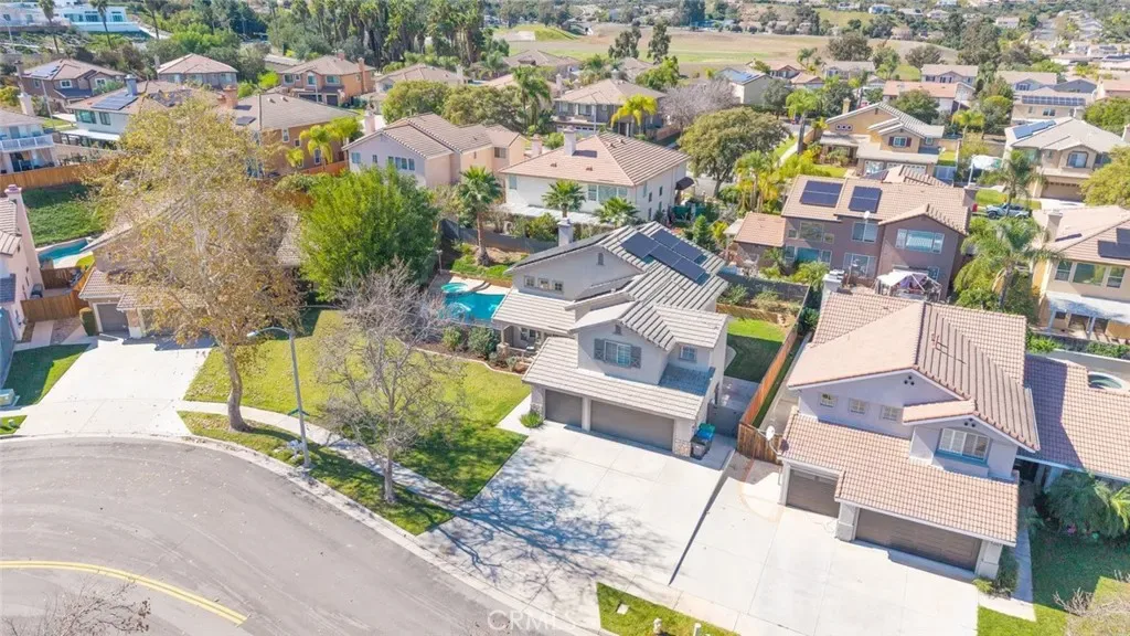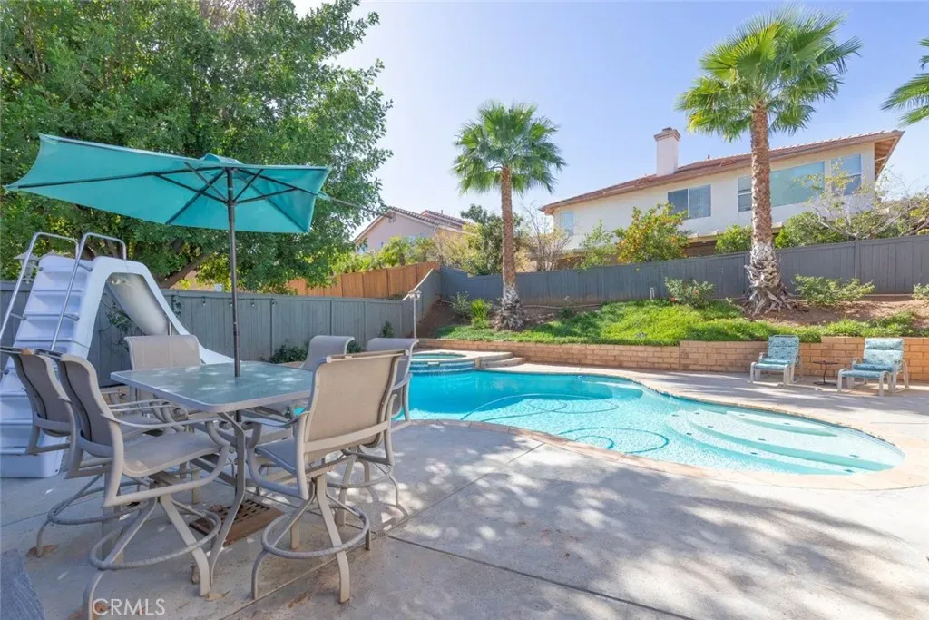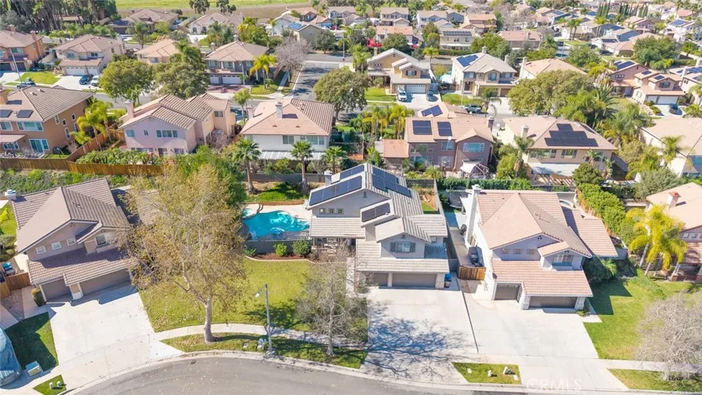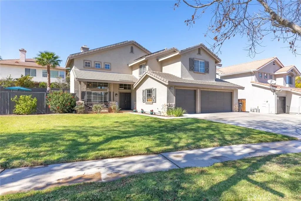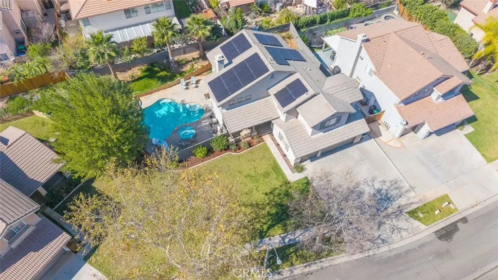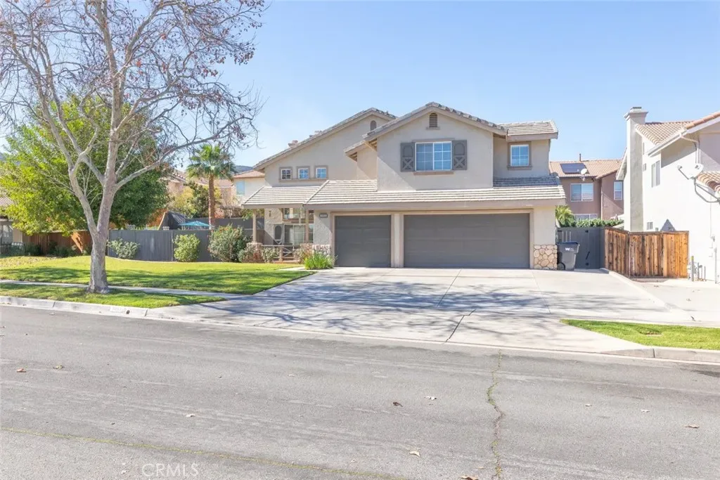 Welcome home! This beautiful residence offers great curb appeal and is perfectly situated in a desirable South Corona location. An inviting entry porch and elegant double door entry welcome you inside to a light and bright floor plan designed for comfortable living and effortless entertaining. The home features an ample formal living room with soaring cathedral ceilings, a warm and inviting family room with fireplace, and a spacious formal dining room ideal for gatherings. The kitchen is equipped with stainless steel appliances and flows nicely into the main living areas, while the generously sized laundry room adds everyday convenience. Upstairs, you’ll find an ample primary bedroom with vaulted ceilings, a spacious walk-in closet, and plenty of room to relax and unwind. Step outside to an ample-sized lot featuring a sparkling pool and spa, perfect for cooling off during those hot summer days and hosting family and friends. Additional highlights include recent exterior paint, a newer HVAC system, and desirable interior upgrades such as recessed lighting, ceiling fans, and window blinds throughout. Parking is no issue here with a 3-car garage plus an extra-wide driveway for additional vehicles or toys. Even better, save big with the leased 33-panel solar system and enjoy very low taxes, making this home an exceptional value in today’s market.