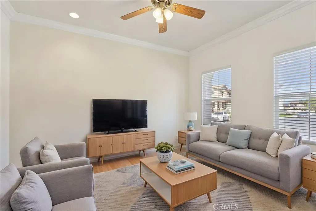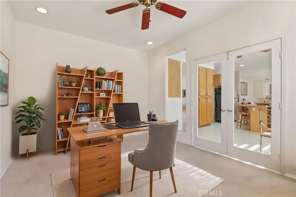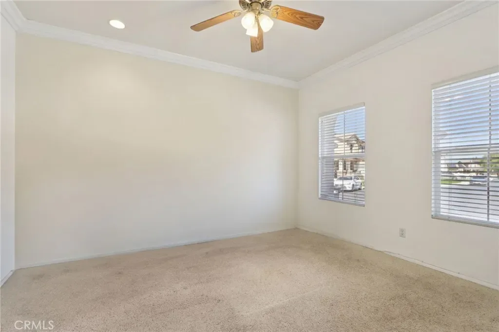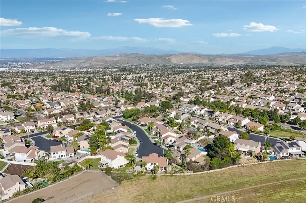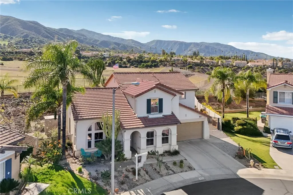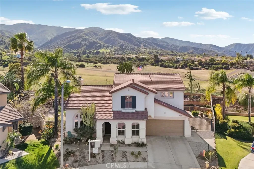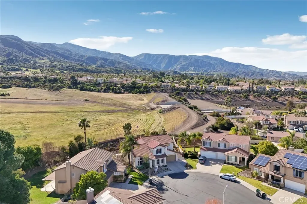 VIEWS | DOWNSTAIRS BEDROOM AND BATH | NO NEIGHBORS BEHIND | LANDSCAPED FRONT AND BACK Located at the end of a quiet cul-de-sac in desirable South Corona, this well-maintained, very private home offers a wonderful opportunity to create your ideal living space in a highly sought-after location. Inside, the home features a bright and open layout with a formal living room highlighted by soaring cathedral ceilings and crown molding, creating an elegant first impression. A formal dining room provides the perfect space for gatherings and special occasions. The spacious family room with fireplace offers a comfortable place to relax and connects easily with the rest of the home. The kitchen is both functional and inviting, offering space for a breakfast table and beautiful glass doors that open to a flexible area that can serve as a home office, study, or additional living space. Two doors lead to the backyard—one from the kitchen and one from the family room—making indoor-outdoor living convenient and natural. The main level also includes a downstairs office that could easily serve as a bedroom, a full bathroom, and a laundry room with a utility sink. Upstairs, a loft provides additional living space ideal for a media room, play area, or workspace. The guest bedrooms are generously sized, while the primary bedroom enjoys beautiful mountain views and abundant natural light, creating a peaceful retreat. The home is in excellent condition and presents an opportunity for a new owner to add personal updates over time and make the space their own. The outdoor setting is truly a standout feature. The front and backyard landscaping create a peaceful, park-like environment designed for relaxation and enjoyment. Very low maintenance, using very little water. The backyard includes a patio cover, fire pit, and newly replaced vinyl fencing, along with a private gate that opens to a path and open land behind the home. With no neighbors directly behind, the property enjoys beautiful views and direct access to nearby walking and hiking trails. Low HOA, low taxes, located in an excellent school district, with easy access to freeways, shopping, and parks.