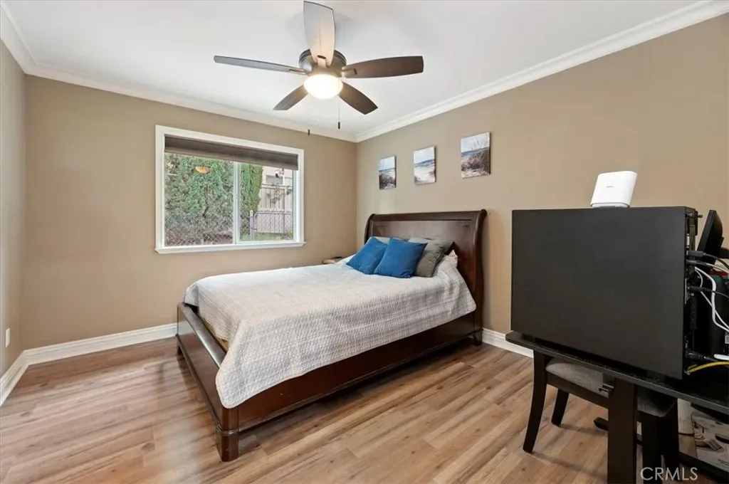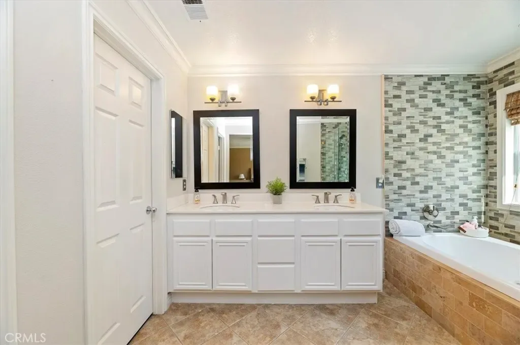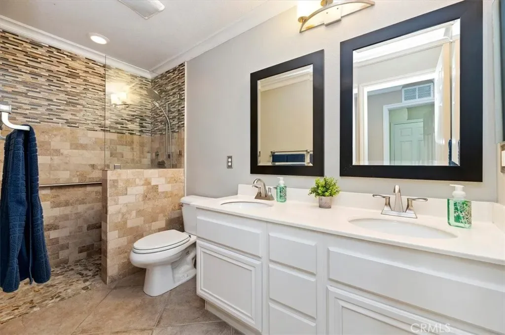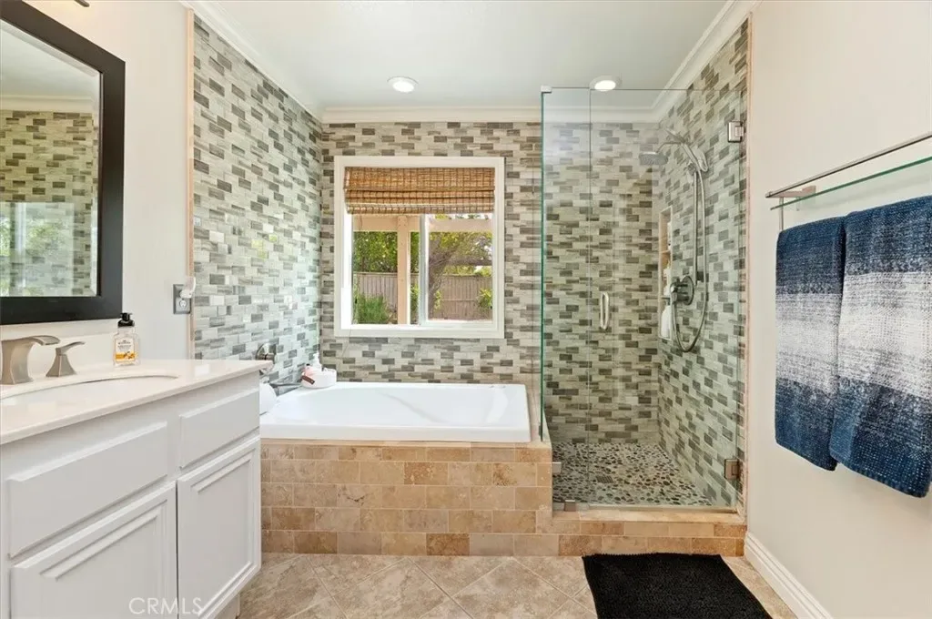 Secondary bedrooms include walk-in closets with custom organizers, while the primary suite features a large walk-in closet and an upgraded bathroom with elegant glass tile accents.