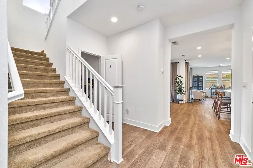 Zero Solar Payment! Fully Paid-Off Tesla Solar System + One of the Most Private Lots in Bedford. This extensively upgraded DETACHED end-unit offers exceptional privacy with only one neighboring home and no home across, creating an open feel with abundant natural light and serene mountain and greenery views. Boasting approximately 3,114 sq ft, this thoughtfully designed home features 4 bedrooms and 3 bathrooms (5Beds & 3.75 Baths on title), including a highly desirable main-floor bedroom and full bath, perfect for guests or multi-generational living. The spacious upstairs loft can easily be converted into a fifth bedroom. A standout feature is the fully paid-off Tesla solar system, complete with 24 roof-mounted panels, Powerwall, Backup Gateway, and EV charger providing true ownership, zero solar payments, and substantial energy savings while comfortably running A/C and charging your EV at home. Extensive upgrades throughout include custom countertops, upgraded cabinetry and hardware, crown molding, solid-core doors, premium flooring, custom-made shutters, cased windows, designer lighting, and a fully upgraded kitchen featuring Whirlpool and LG appliances with a wrapped island. The spa-inspired primary bathroom showcases a full-height tile shower and elevated finishes. Additional highlights include epoxy garage flooring with custom storage solutions and professionally designed landscaping and hardscape. Located in the highly sought-after Bedford community, residents enjoy resort-style amenities including multiple pools and spas, a saltwater lap pool, state-of-the-art fitness center, parks, walking trails, dog parks, and a clubhouse. Walking distance to Bedford Marketplace with Starbucks, dining, and more, plus easy access to the 15 Freeway. A rare combination of premium lot, extensive upgrades, and fully owned solar this home truly stands out. Welcome Home!
