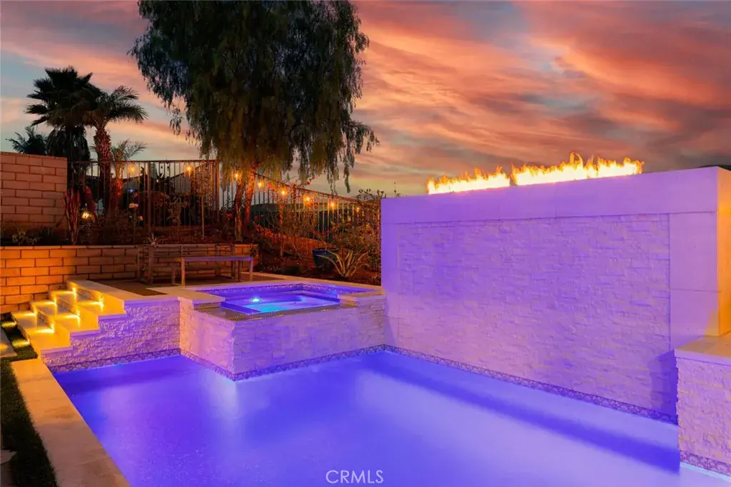 Situated within the prestigious gated community of Temescal Heights at Dos Lagos, this exceptional residence offers gorgeous panoramic views of the Dos Lagos Golf Course and an elevated living experience designed for comfort, style, and entertaining. At the heart of the home is a stunning, fully redesigned kitchen, thoughtfully reimagined beyond the original floor plan to enhance functionality and flow. This chef-inspired space showcases custom-made cabinetry, quartz countertops, a decorative tile backsplash, stainless steel appliances, elegant pendant lighting, a GE Monogram built-in refrigerator, a dual-zone wine refrigerator for the true wine connoisseur, and a generous walk-in pantry—perfect for both everyday living and hosting. The spacious family room, anchored by a majestic fireplace, provides an inviting setting and opens effortlessly to the central courtyard, where charming bistro lights create a warm and unforgettable nighttime ambiance. The downstairs floor plan is exceptionally versatile, offering a full bedroom and bathroom, an additional half bathroom for guests, and a bonus room ideal for a home office, gym, or flex space—whatever you fancy. A decorative wrought-iron stair banister adds a touch of elegance as you ascend to the upper level. Upstairs, enjoy a loft-style den with direct access to a spacious front balcony, perfect for morning coffee or sunset views. The luxurious primary suite is ample in size and features panoramic golf course views from its private balcony, along with dual walk-in closets complete with custom built-in organizers. The primary bathroom has been masterfully redesigned to maximize usability and deliver a true spa-like experience. An upstairs laundry room adds everyday convenience. Step outside to a resort-style backyard designed to impress. Highlights include a modern pool with stunning water features, fire effects, and a Pebble Tech bottom, a fire pit for cozy evening gatherings, a private putting green, and an ample side yard offering endless possibilities to customize to your lifestyle. Additional upgrades include luxury vinyl plank flooring throughout, custom lighting fixtures and ceiling fans, upgraded LED lighting, an epoxy-coated garage floor, and energy-saving exterior solar paint, helping to keep electricity costs down. This remarkable home seamlessly blends luxury, thoughtful upgrades, and resort-style living in one of the most sought-after communities in the area—an opportunity that truly stands apart.