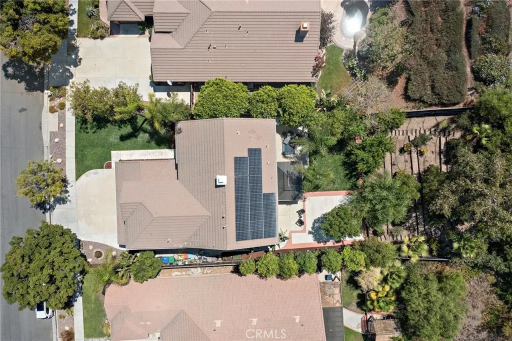 Stunning 6-bedroom, 3-bath home with NO HOA, LOW TAXES, and fully paid 8.4 kW SOLAR! Located in a highly desirable neighborhood in the foothills of South Corona, this spacious home offers an ideal floorplan with a downstairs bedroom and full bath—perfect for guests or multi-generational living. Enter through double doors into a light filled home featuring formal living and dining rooms, a generous sized family room that opens with gas fireplace, which opens into an updated kitchen with brand-new quartz countertops, large island, stainless steel appliances, and breakfast nook with slider to the backyard. Upstairs you’ll find five more spacious bedrooms, including a luxurious primary suite with double-door entry, dual walk-in closets, soaking tub, separate shower, dual vanities, and a sit-down vanity area. A large loft offers flexible space for a home office, playroom, or second living area. The private backyard is pool-sized and perfect for entertaining family and friends alike for a barbecue, play dates, or evening drinks with a large patio, mature fruit trees (lemon & pomegranate), raised garden beds, and terraced planting areas. Energy-efficient upgrades include solar (installed 2018), tankless water heater, newer dual zoned HVAC (Dec 2022), whole-house fan, NEST thermostat with sensors, smart home window shades, and smart irrigation for both grass and drought-tolerant landscaping. The 3-car garage offers ample storage, with plenty of driveway and street parking. Walk to Santiago High School and local parks, with easy access to the 91/15 freeways, express lanes, shopping, dining, and trails. This one truly has it all—space, upgrades, and location!