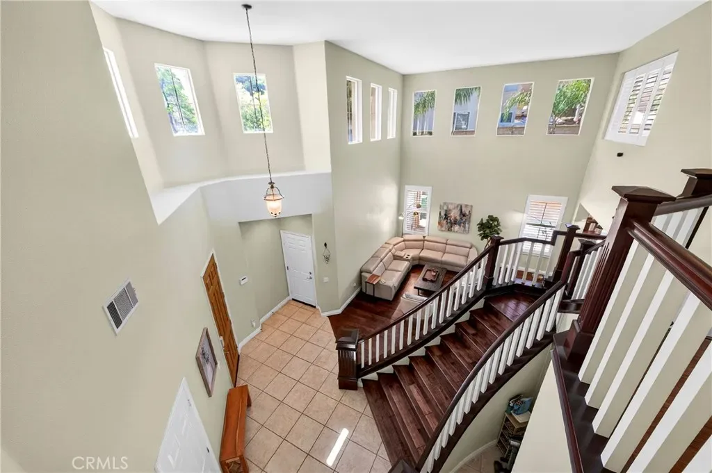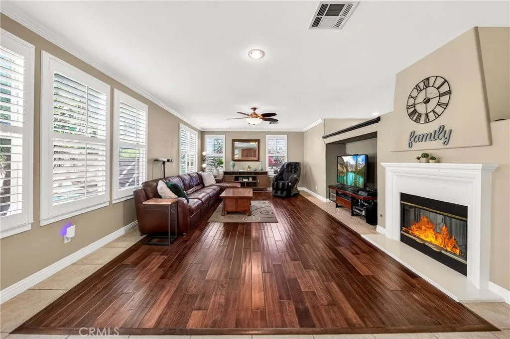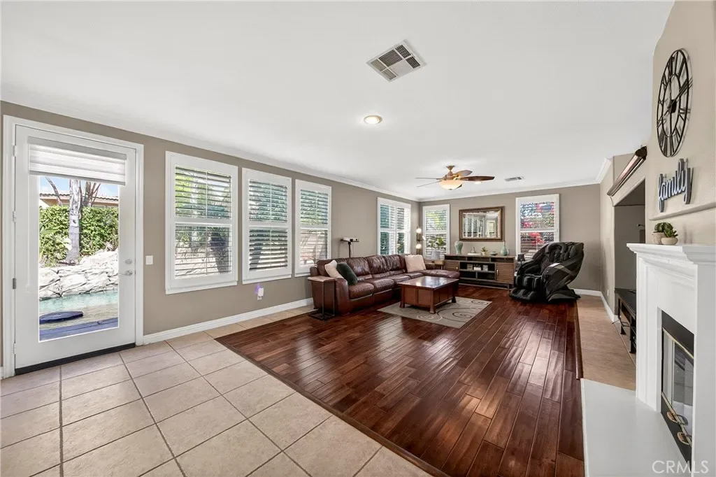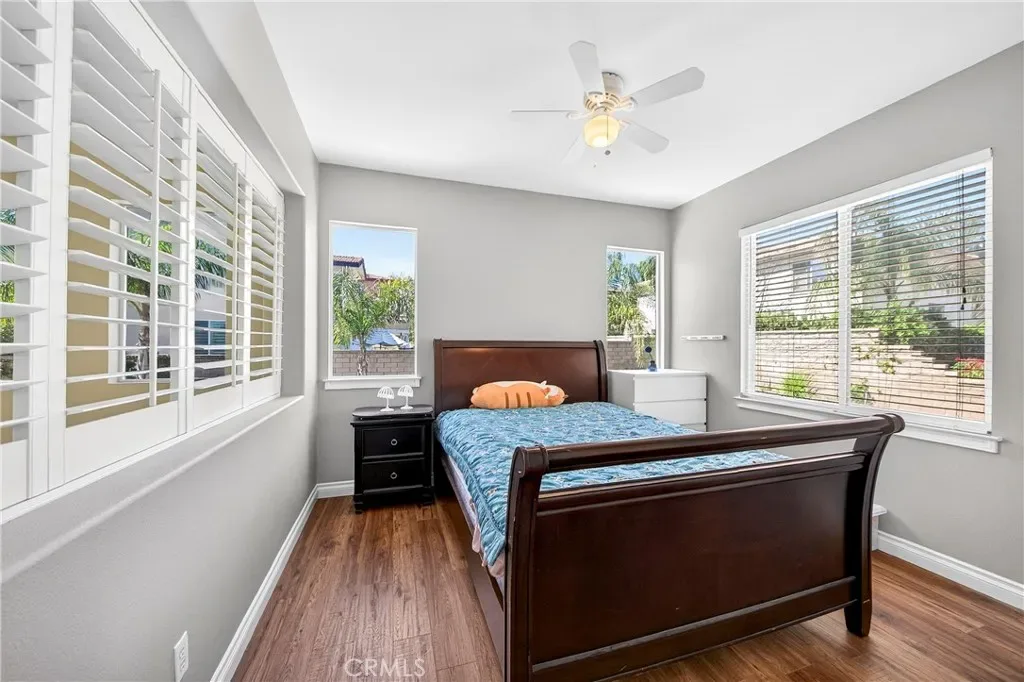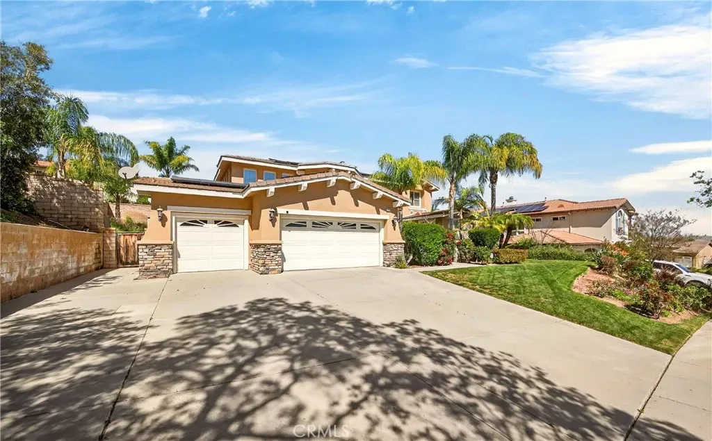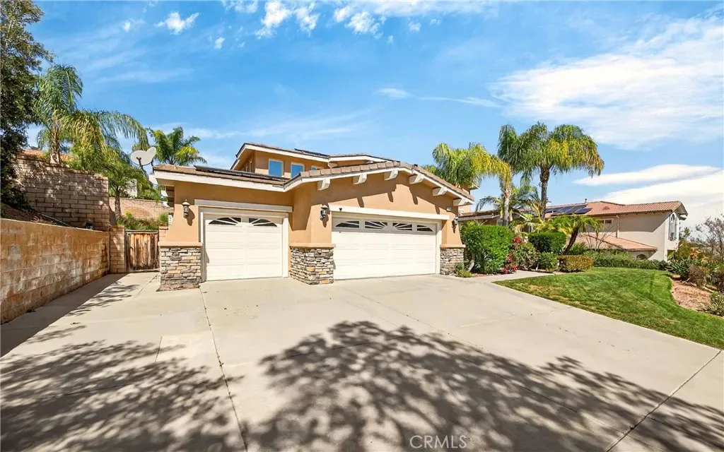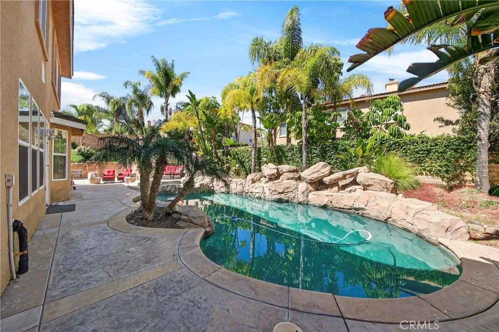 Resort-style Eagle Glen pool home with 3-car garage, flexible 6-bedroom potential, and a stunning rock pool & spa, perfect for luxury living and entertaining. From the moment you enter, you are greeted by soaring ceilings, a dramatic staircase, and an abundance of natural light that fills the spacious open floor plan. Designed for both everyday living and entertaining, the home features expansive living areas with beautiful wood flooring and seamless flow between the living room, dining area, family room, and kitchen. This beautiful home offers a bedroom and a full bathroom and an office on main level. The gourmet kitchen showcases rich wood cabinetry, granite countertops, stainless steel appliances, and a large center island with bar seating, opening to a warm and inviting family room with a fireplace. Spacious living room and formal dining room combo area. The luxurious primary suite offers a peaceful retreat with a spacious layout and a spa-inspired bathroom featuring dual vanities, a soaking tub, and a large walk-in shower, walk-in closet. Generously sized secondary bedrooms provide flexibility for family, guests, or a home office, with the potential for up to six bedrooms. Step outside into your private tropical oasis. The beautifully landscaped backyard features a resort-style rock pool surrounded by lush palm trees, natural stone accents, and multiple seating areas perfect for relaxing or entertaining. Additional highlights include a financed solar system for energy efficiency, NEWER HVAC SYSTEM (installed in 2024)and WATER HEATERS, and a desirable location with LOW HOA and LOW PROPERTY TAXES. Conveniently located near golf, parks, top-rated schools, and shopping, this exceptional Eagle Glen residence offers the perfect blend of luxury and lifestyle.