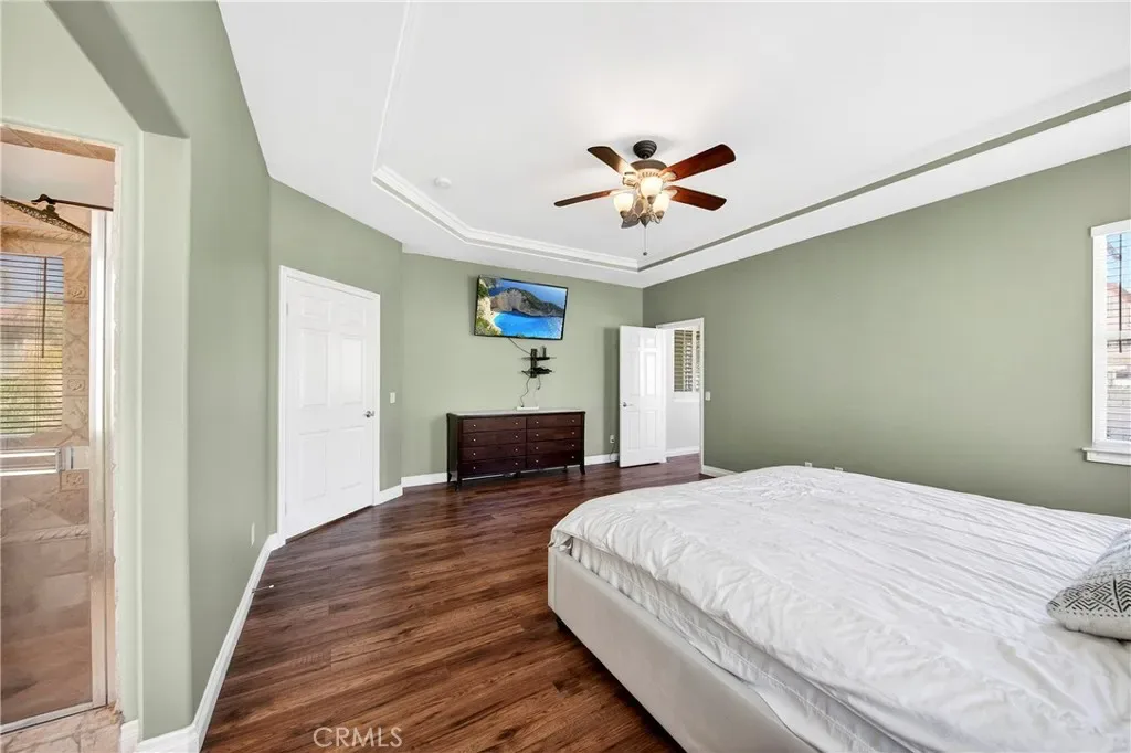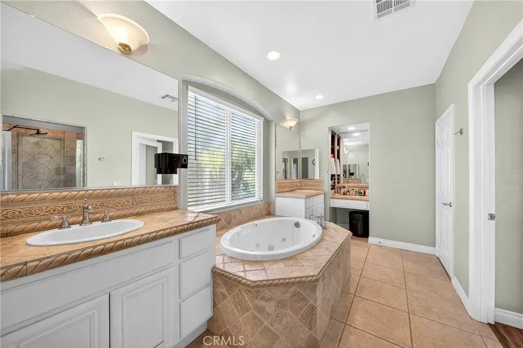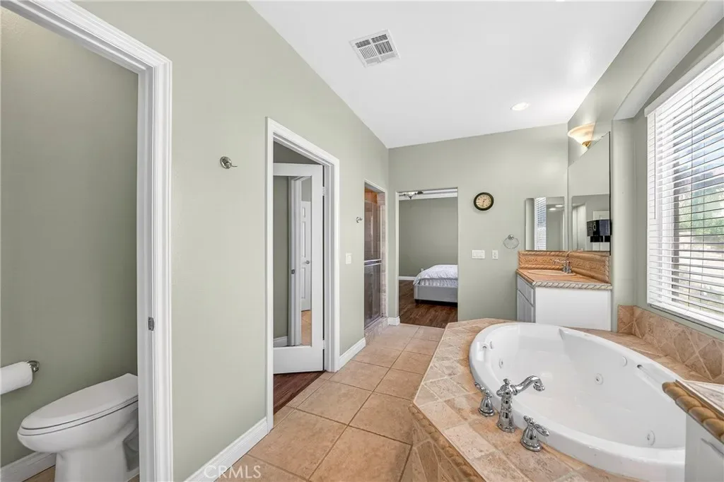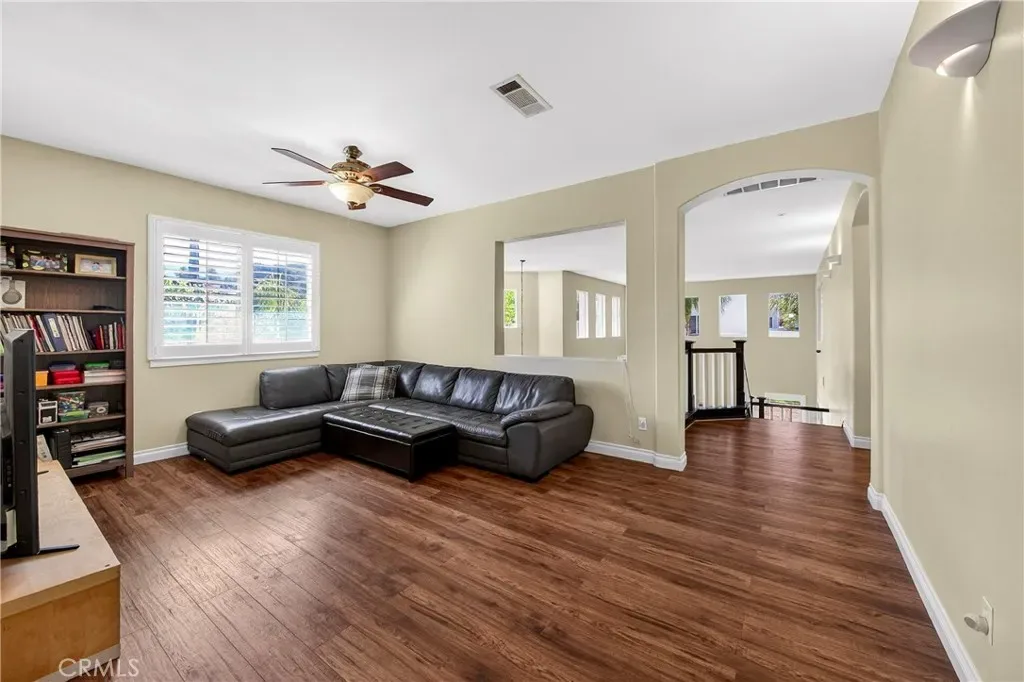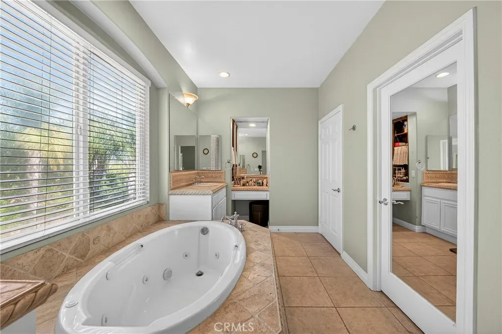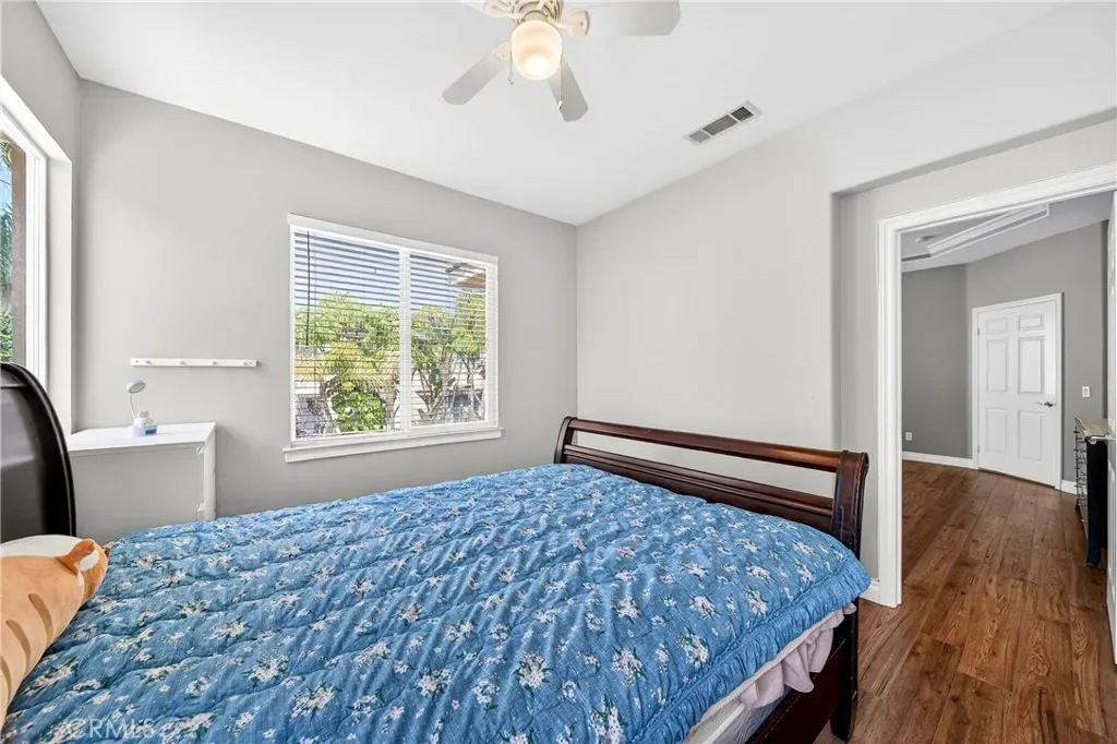 Resort-style Eagle Glen pool home with 3-car garage, flexible 6-bedroom potential, and a stunning rock pool & spa, perfect for luxury living and entertaining. From the moment you enter, you are greeted by soaring ceilings, a dramatic staircase, and an abundance of natural light that fills the spacious open floor plan. Designed for both everyday living and entertaining, the home features expansive living areas with beautiful wood flooring and seamless flow between the living room, dining area, family room, and kitchen. This beautiful home offers a bedroom and a full bathroom and an office on main level. The gourmet kitchen showcases rich wood cabinetry, granite countertops, stainless steel appliances, and a large center island with bar seating, opening to a warm and inviting family room with a fireplace. Spacious living room and formal dining room combo area. The luxurious primary suite offers a peaceful retreat with a spacious layout and a spa-inspired bathroom featuring dual vanities, a soaking tub, and a large walk-in shower, walk-in closet. Generously sized secondary bedrooms provide flexibility for family, guests, or a home office, with the potential for up to six bedrooms. Step outside into your private tropical oasis. The beautifully landscaped backyard features a resort-style rock pool surrounded by lush palm trees, natural stone accents, and multiple seating areas perfect for relaxing or entertaining. Additional highlights include a financed solar system for energy efficiency, NEWER HVAC SYSTEM (installed in 2024)and WATER HEATERS, and a desirable location with LOW HOA and LOW PROPERTY TAXES. Conveniently located near golf, parks, top-rated schools, and shopping, this exceptional Eagle Glen residence offers the perfect blend of luxury and lifestyle.