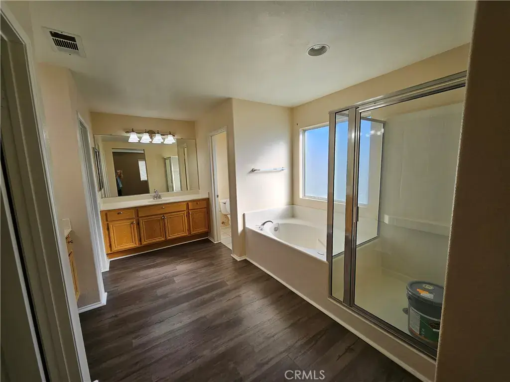 This stunning two-story residence is nestled in the Eagle Glen Golf community, boasting 4 bedrooms, 3 full bathrooms, a large office, an upstairs loft, and a 2-car garage. The main floor features one bedroom, a full bathroom, and a vast formal dining and living room combination. The main floor also hosts a sizable office. Flooring is a mix of tile and laminate wood, complemented by crown moldings and ceiling fans. The chef’s kitchen is equipped with exquisite granite countertops, a large island with a white quartz countertop, and stainless steel appliances. The upstairs includes a spacious loft. The airy and bright primary suite offers a large bedroom, an expansive walk-in closet, and a generous bathroom with a roman tub, a walk-in shower, and double vanity sinks. Additionally, there are two well-proportioned bedrooms and a full bathroom upstairs. The laundry room is conveniently situated on the main floor adjacent to the kitchen. The backyard, with its ample size and covered patio, is ideal for family gatherings. The home is in close proximity to Wilson Elementary School, tennis courts, parks, golf courses, and shopping areas, with easy access to the freeway.