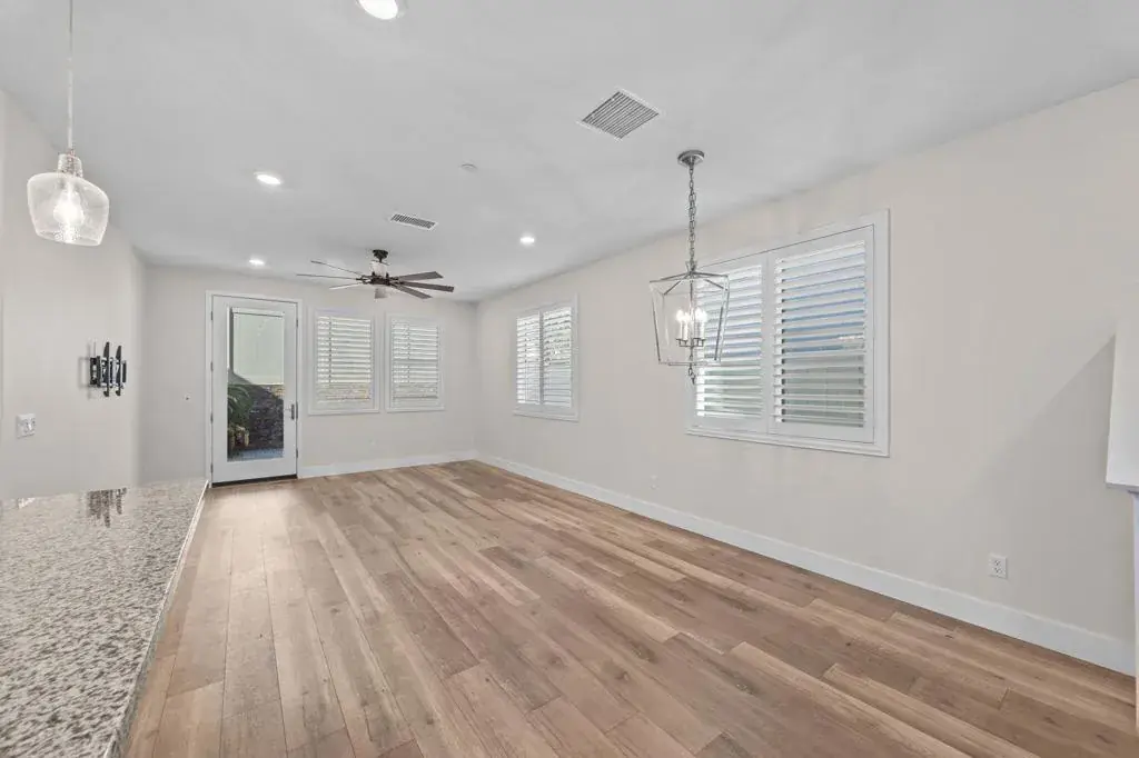 Experience the perfect blend of privacy, style, and convenience at 24569 Sonieta Ct, a rare free-standing condo with no shared walls in a commute-friendly Mountain View location. This beautifully maintained home offers 4 bedrooms and 3 bathrooms, thoughtfully designed for both comfort and modern living. The main floor exudes warmth and elegance with plantation shutters downstairs and newly updated flooring, creating an inviting space for family gatherings or entertaining guests. Upstairs, generous bedrooms provide privacy and versatility for everyone in the household. Step into the backyard oasis, completely redesigned with low-maintenance turf and stylish pavers, offering an ideal space to relax, host, or play. The attached garage is a standout feature, upgraded with custom cabinetry and a finished floor, blending functionality with polished appeal. Additional perks include leased solar, ready for the buyer to assume, providing energy efficiency and potential savings. With no shared walls, thoughtful upgrades, and a location that balances tranquility with accessibility, this home is a rare opportunity for those seeking a move-in-ready home with style and convenience.