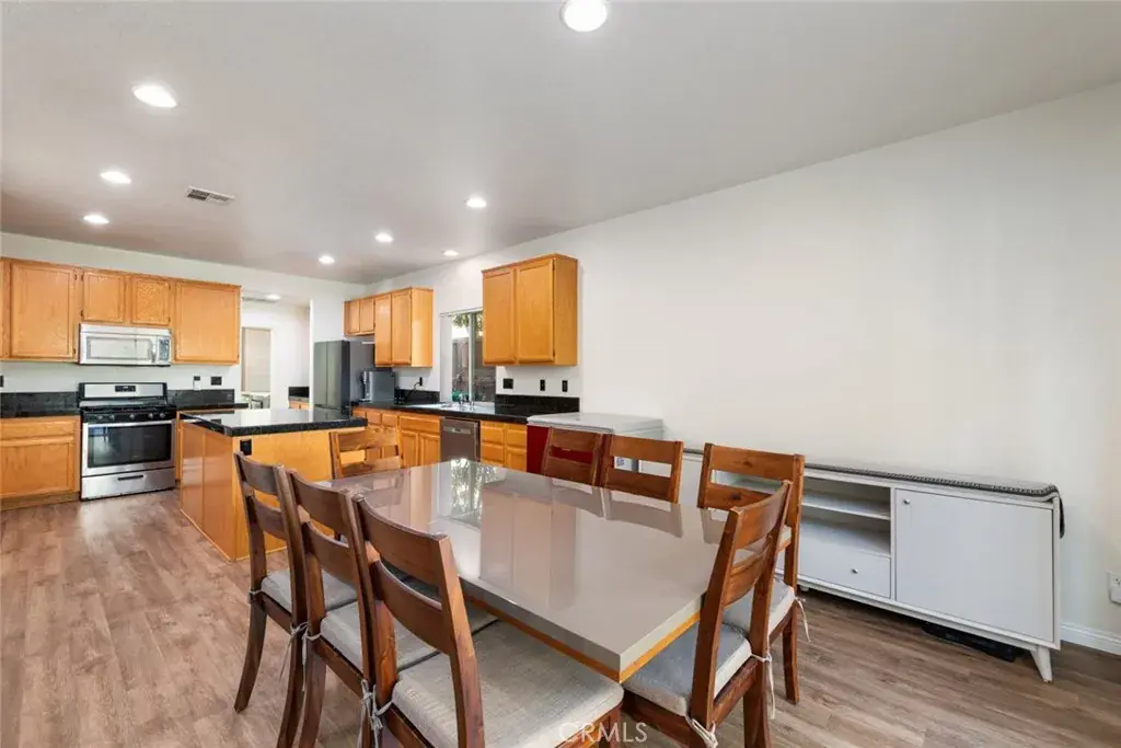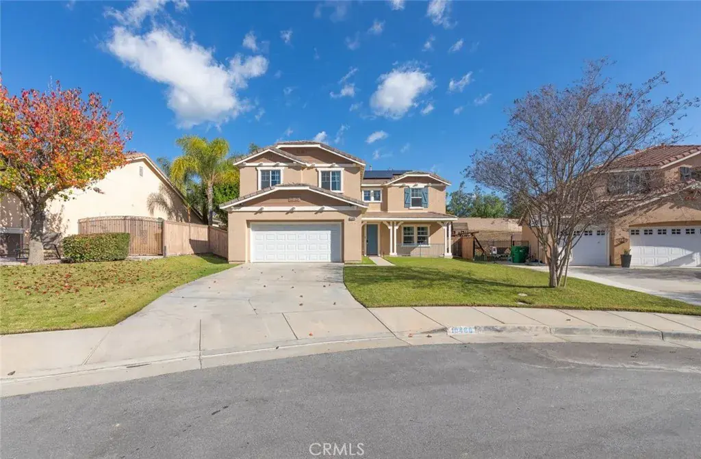 Nestled in the highly desirable Painted Hills community, where scenic surroundings and everyday convenience come together. Situated at the end of a quiet cul-de-sac on a generous 9,147 sq ft lot, this impressive 3,512 sq ft residence offers a perfect blend of space, comfort, and style. The downstairs bonus room can easily be converted into a 5th bedroom. Additionally, this home offers a spacious loft and the versatile floor plan is ideal for growing families, multi-generational living, or those who love to entertain. As you step inside, you are greeted by soaring two-story ceilings that create a bright, open, and welcoming atmosphere. Newer wood-like flooring and recessed lighting throughout add a modern and elegant touch. Designed with entertaining in mind, the home offers formal living and dining rooms along with a spacious family room centered around a cozy fireplace, perfect for relaxing evenings and memorable gatherings. The heart of the home is the beautifully appointed kitchen, featuring stainless steel appliances, ample cabinetry, a pantry, and a large center island ideal for both meal prep and casual dining. Step outside to your private backyard retreat, complete with elegant stamped concrete for low-maintenance enjoyment—perfect for outdoor dining, relaxing, or enjoying Southern California’s beautiful weather year-round. The Painted Hills community offers wonderful HOA amenities including a park, picnic areas, and a playground, fostering a true sense of neighborhood and outdoor lifestyle. Ideally located near The Shops at Dos Lagos and The Crossings shopping centers where can get away for some shopping, dining and entertainment. This is a rare opportunity to own a spacious, beautifully maintained home in one of the area’s most sought-after communities—ready to welcome you home.