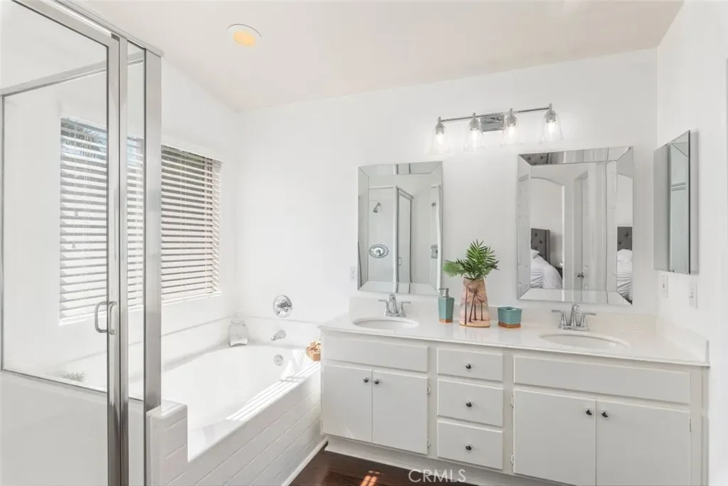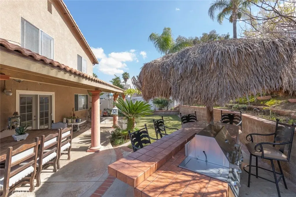 This beautiful 5 bedroom, 3 bath home is located in the prestigious gated Ashwood community of South Corona, offers elegant living spaces, modern amenities, and a serene outdoor retreat, making it an ideal sanctuary for both relaxation and entertainment. As you step inside, you are greeted by a beautiful living room bathed in natural light, setting a warm and welcoming tone for the entire home. The space effortlessly transitions into a large, elegant family room, the perfect setting for gatherings or tranquil evenings by the fireplace. Adjacent to the family room, a dedicated area awaits your formal dining table, promising memorable dining experiences under the subtle glow of stylish lighting. The culinary artist will love in the newly, highly upgraded kitchen, a masterpiece of design and functionality, featuring top-of-the-line stainless steel appliances, farmhouse sink, granite countertops and a generous island with a built-in beverage refrigerator. The downstairs hosts a spacious bedroom accompanied by a full bathroom, offering a private retreat for guests or a versatile space for a office or playroom. The upper level has four large bedrooms, including the primary suite—a haven of relaxation with a newly upgraded en-suite bathroom, complete with a luxurious soaking tub for ultimate indulgence. Step outside to the expansive backyard, where a custom patio spans the width of the house, providing an idyllic backdrop for outdoor living. Under the cooling breeze of ceiling fans, savor al fresco dining with the built-in barbecue, all while surrounded by a vibrant array of fruit trees, including pomegranate, pear, peach, nectarine, avocado, dragon fruit, apricot, guava, lemon, orange and papaya. Additional features included, luxury laminate flooring, new air conditioner and furnace, newer water heater, laundry located upstairs and washer/dryer and refrigerator included in the sale. This home is not just a place to live but a lifestyle, located in a top-rated school district, near parks, hiking trails, the 15, 91 freeways and Foothill Expressway. With over $100,000 in enhancements, including kitchen upgrades and backyard improvements, every detail has been meticulously crafted to ensure unparalleled living. Low HOA fees and a low tax rates. Schedule your private showing today and take the first step toward making this dream home your reality.