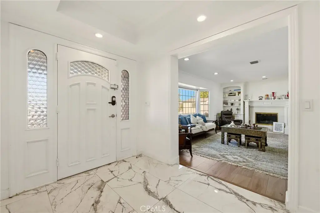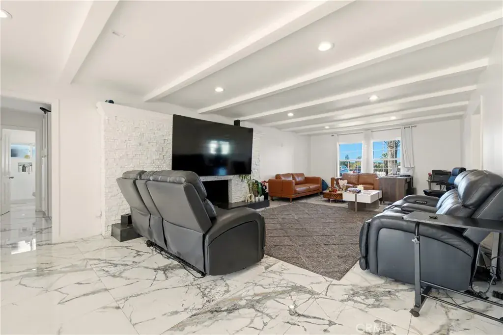 Welcome to 1301 Paseo Grande in Corona, a well-appointed home designed for everyday comfort and easy entertaining. The property offers multiple spacious living areas with abundant natural light, including a formal living room with fireplace and coffered ceilings, and a separate family room with exposed beams, a second fireplace, and sliding doors that open to the backyard. A dedicated office or den with custom built-ins provides flexibility and may be used as a fifth bedroom, complete with a private full bathroom and separate exterior access.