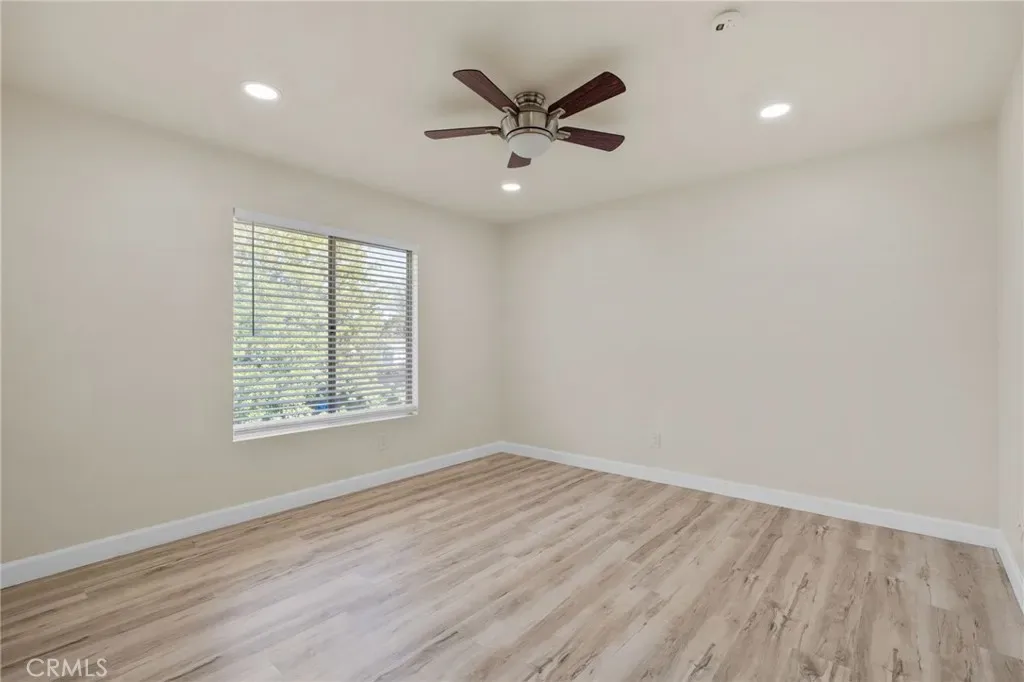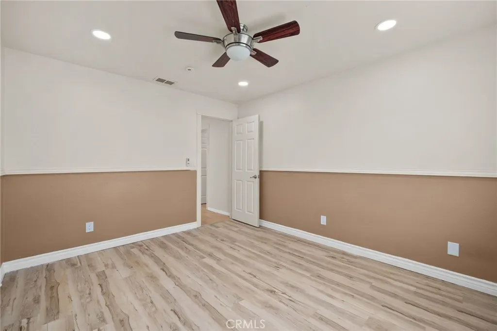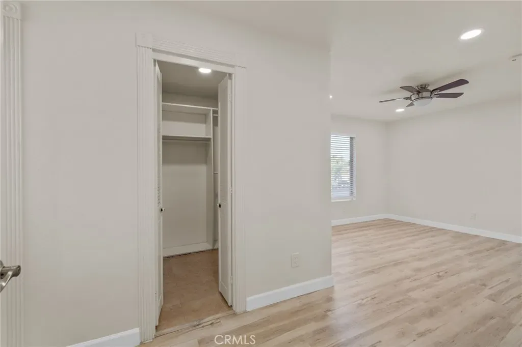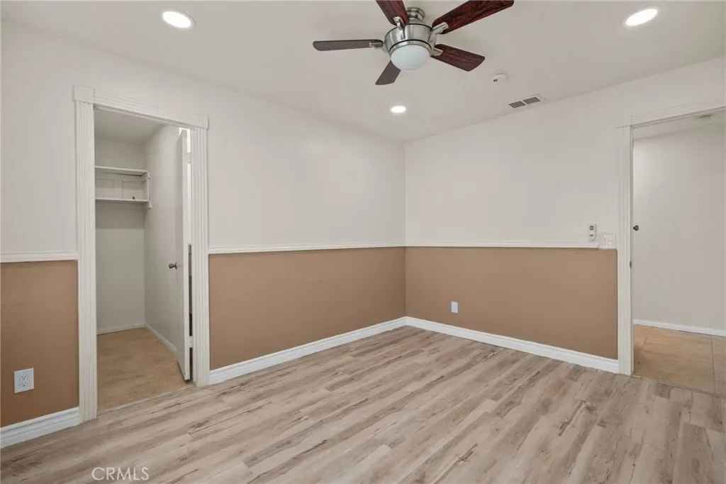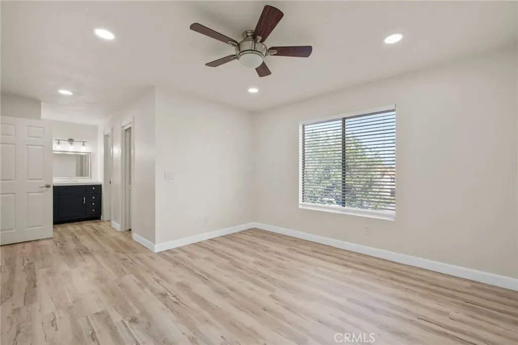 This home features two generously sized bedrooms. The primary suite is a true retreat with vinyl flooring, fresh paint, ceiling fan, blinds, and custom built-in shelving. You’ll love the walk-in closet and the beautifully updated primary bathroom complete with a modern walk-in shower. The secondary bedroom is also impressively sized and is complemented by its own updated bathroom, offering comfort and privacy for guests or family members.