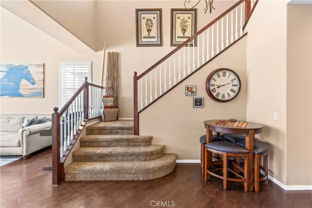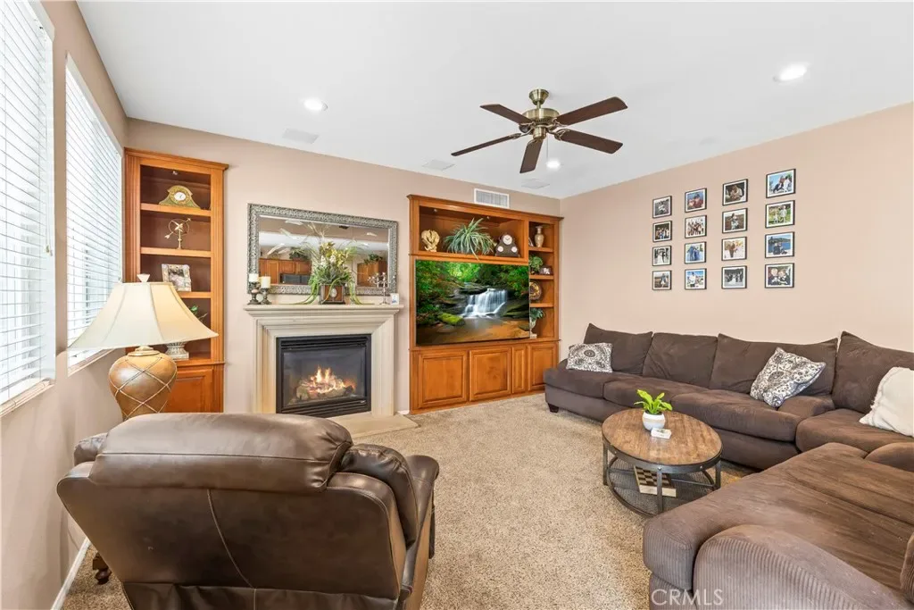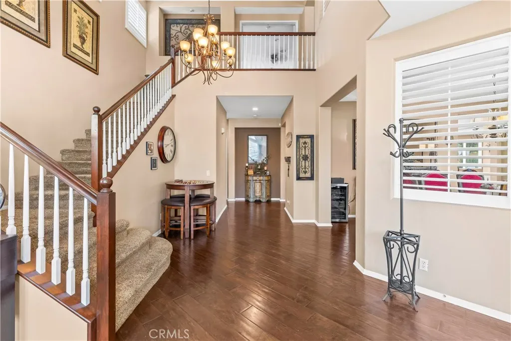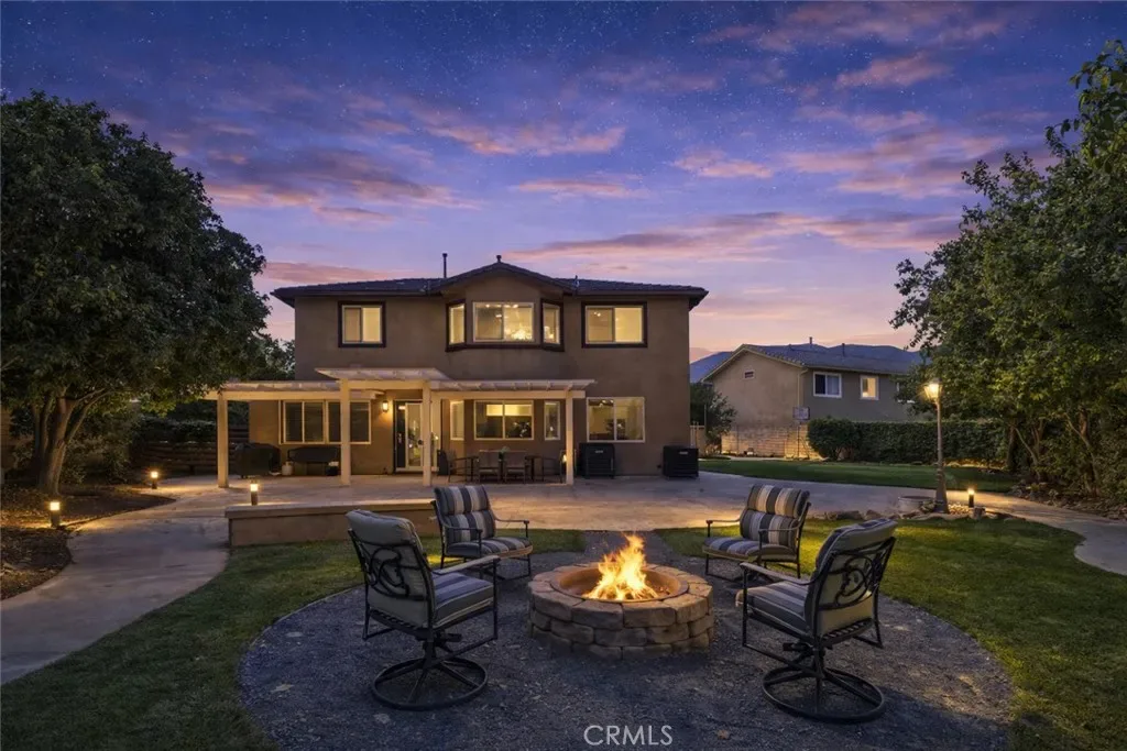 Impressive views. Expansive living. Prime location. Your search is over! Welcome to a model-perfect residence tucked away on a private cul-de-sac, offering 3,572 sq ft of living space on a generous 10,018 sq ft sized lot that offers excellent potential for an ADU and/or pool, providing flexibility for extended family or future rental income. Complete with a 3-car garage, views of the city lights, surrounding mountains, and the natural beauty of the Cleveland National Forest. Ideally located just minutes from Orange County, this home delivers the perfect balance of accessibility and tranquility, with the renowned Skyline Trail just moments away. The thoughtfully designed floorplan features 5 bedrooms, 4 bathrooms, and a spacious loft, including a large upstairs bedroom with its own attached bathroom (junior suite). Interior highlights include hardwood flooring, travertine tile, soft water system and water purifier, an upgraded kitchen with granite countertops, maple cabinetry with glass accents, double oven and stainless steel appliances. The family room includes custom built-in cabinetry, and opens to the main living areas. A highly desirable main-floor bedroom and full bathroom with walk-in shower provides flexibility for guests or multi-generational living. Upstairs, the expansive primary suite includes a dedicated sitting area, upgraded bathroom, and walk-in closet with built-ins. Additional features include a large loft/bonus room with cabinetry and DUAL STAIRCASES plus surround sound in the family room, primary bedroom and the loft. Recent upgrades include two brand new air conditioning systems and a fully paid solar system. The backyard features low-maintenance turf, a putting green, a covered patio, and extended concrete hardscape, offering a spacious setting for outdoor living and entertaining. Located within the Corona-Norco Unified School District, with access to well-rated local schools plus minutes from shopping, dining, and entertainment at The Crossings at Corona and Dos Lagos. Some photos have been digitally enhanced