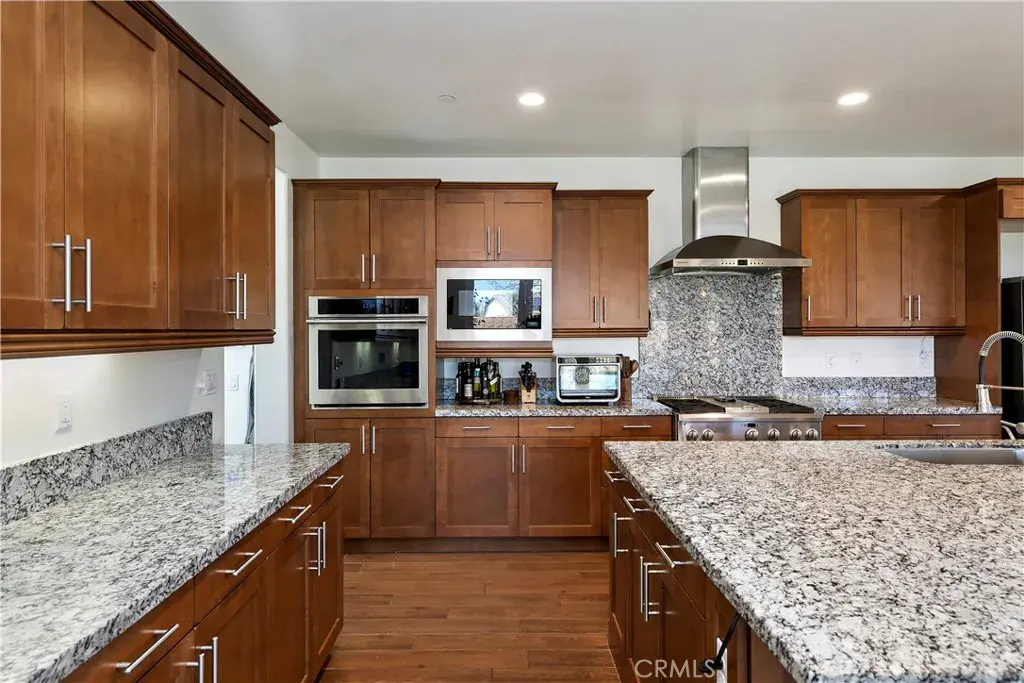 The chef’s kitchen is truly a gourmet’s dream, featuring granite countertops, a large seated island, stained maple cabinetry with soft-close doors, designer pendant lighting, GE Monogram stainless steel appliances, and a spacious walk-in pantry. The lower level also has a nice size bedroom with walk-in closet and full bath.