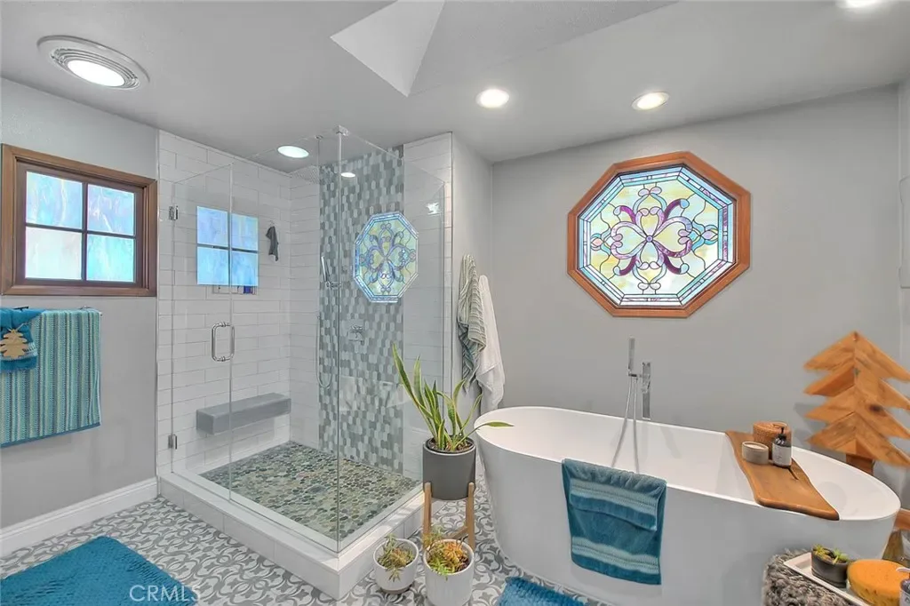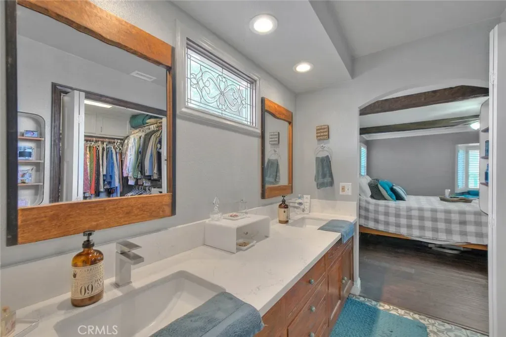 FABULOUS & WONDERFULLY upgraded SINGLE story home located on a sprawling 15,246 sq ft lot. (per tax roll) The amenities of this highly desirable property are many! There are 4 bedrooms including the primary & 3 bathrooms. Exterior features include RV parking, oversized garage w/pull through door, a very private backyard that is ideal for entertaining with inground pool, raised deck for outdoor dining, an expansive lawn area, mature trees, above ground spa, firepit & more! Interior has been remodeled throughout including a GORGEOUS kitchen done in light & bright white cabinetry with a skylight that brings in soft natural light, Carrera marble counters & dramatic blue glass subway tile backsplash. Stainless appliances including trash compactor, wine frig, oven, microwave, dishwasher & 5 burner cook top w/overhead hood. Built-in subzero refrigerator matches the cabinetry. Overhead beam accents add a designer touch to the kitchen. All bathrooms have been upgraded & the guest bathroom is done in a contemporary design showcasing a large walk-in shower, dramatic tile accent wall & contemporary light fixture that further enhances the décor. The smaller guest bathroom also features a beautiful tile design in the shower. There is a formal dining room as well as a generous space for casual informal dining right off the kitchen adjacent to the living room that could be used for a pool table or multi-purpose area. This space has built-in seating by the windows. There is also a breakfast nook with attractive accent wall design & overhead ceiling fan. 3 indoor areas to dine! An inviting fireplace with raised hearth, beautiful tile detailing & a custom mantel adorns the living room, a spacious and relaxed room to gather in. Tranquil primary suite is sizeable with faux beam ceiling accents, spacious walk-in closet & tastefully upgraded bathroom including double vanity with quartz counters, tile floor & beautiful walk-in shower w/gorgeous tile detailing. There is a separate soaking tub as well. This home features upgraded engineered wood plank flooring through almost the entire interior w/exception of bathrooms & one bedroom & den. One guest bedroom has an adjoining room currently used as a den. Other notables: Stained glass windows in many rooms, updated lighting fixtures, 2 AC units, crown molding, multiple decorative accent walls, reverse osmosis water system in the kitchen, barn door, convenient indoor laundry niche, an abundance of storage built-ins & more! A MUST see!