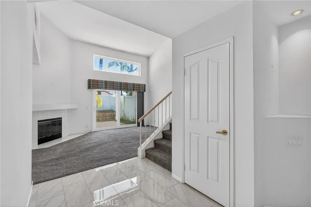 SOUTH WEST CORONA- BELLA VISTA – Welcome to this bright and spacious 3 bedroom, 3 bathroom condominium in the quiet Bella Vista community. The living room boasts a soaring ceiling, fireplace, and transom windows for extra light. The kitchen offers plenty of storage space and opens to a formal dining area. The downstairs bedroom, currently configured as an office, includes built-in wood shelving plus access to an updated downstairs guest bathroom. Upstairs are 2 additional bedrooms, each with vaulted ceilings and ensuite bathrooms. The private backyard is accessible via both living room and dining area and offers a patio cover and brick planters. HOA amenities include access to the community pool and spa and frontyard landscape maintenance. Convenient access to 91 freeway and shopping.