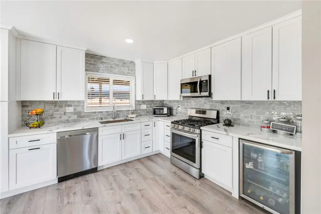 Welcome Home! This home features 3 bedroom, 2 bathrooms, single level/open concept, fully remodeled ready to move in. The kitchen features white cabinets with soft close, gorgeous quartz countertops, matching stainless steel appliances, recessed lighting and double pantries. The living room features recessed lighting and a fireplace. All three bedrooms have new ceiling fans with remotes and mirrored closet doors. The bathrooms have quartz counter tops and beautiful showers, new windows, RV parking and more. It’s located in highly desired neighborhood centrally located on a cul-de-sac with easy access to all the major freeways.