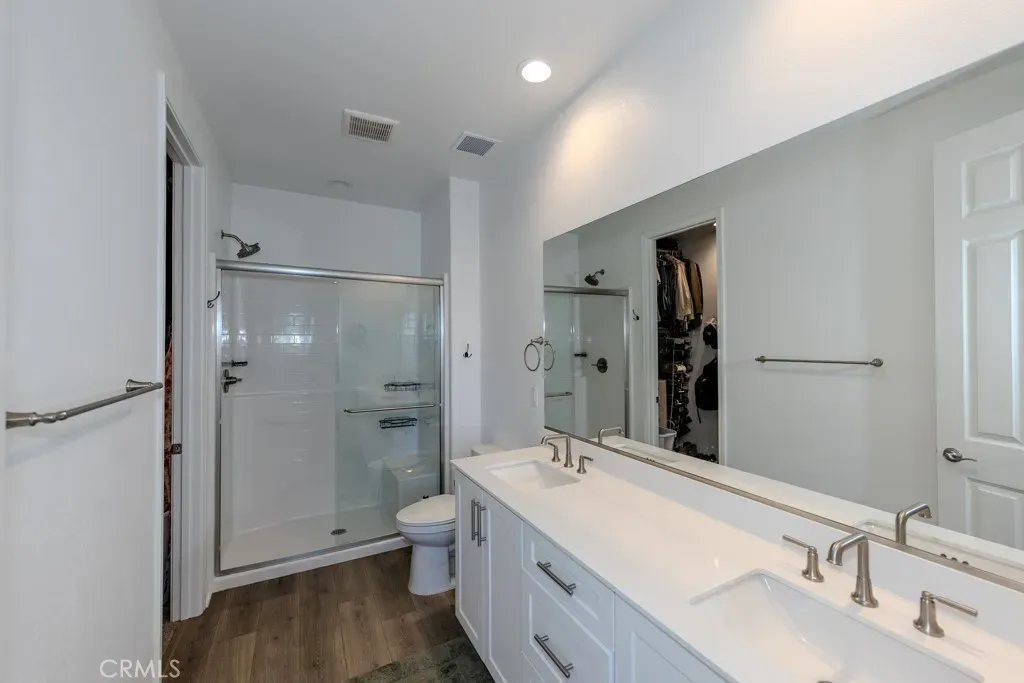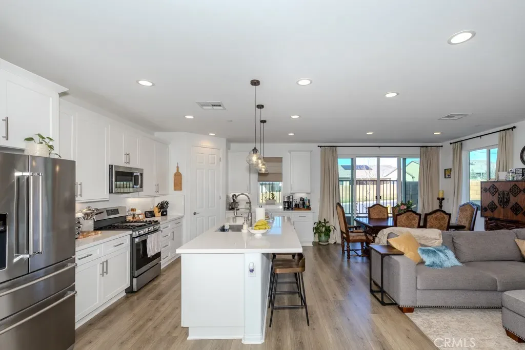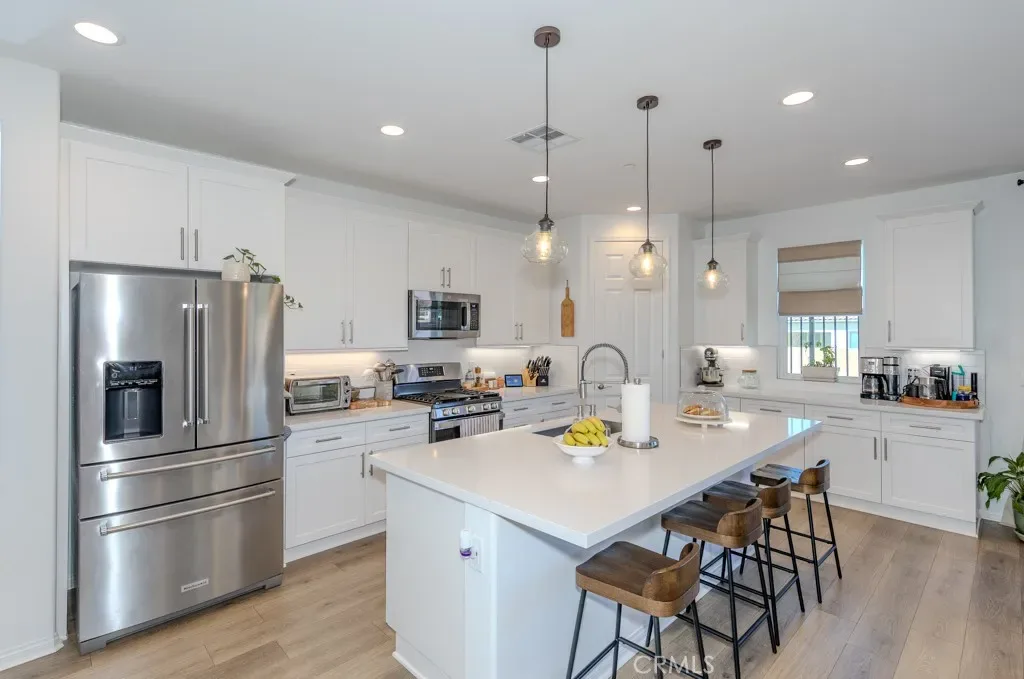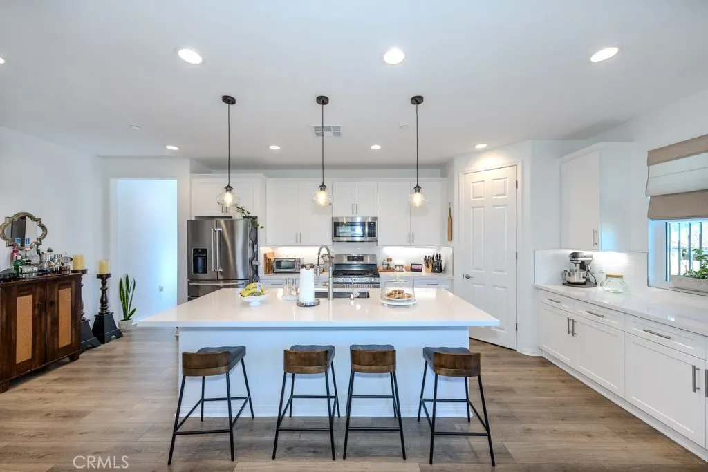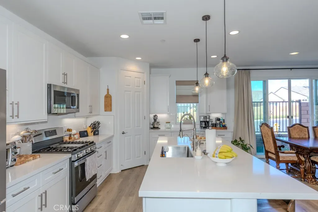 Oversized sliding glass doors frame gorgeous mountain views and fill the home with natural light. The gourmet kitchen showcases a spacious quartz island, top-of-the-line appliances, and elegant finishes. Seller invested significantly in premium builder upgrades. A combination of upgraded laminate flooring and plush carpet runs throughout, while ceiling fans enhance comfort in every room. The primary suite is a tranquil retreat featuring a walk-in shower also showcases quartz countertops and a generous walk-in closet. Additional energy-efficient features include a tankless water heater and Energy Star appliances. Terramor, named Master Planned Community of the Year by the Building Industry Association of Southern California (2018), offers resort-style amenities, more than 540 acres of protected open space, scenic views of Cleveland National Forest, 5 miles of trails, and 22 acres of parks. Conveniently located near the I-15 freeway, Glen Ivy Hot Springs, and shopping and dining at The Shops at Dos Lagos. Don’t miss the opportunity to own an exceptional home in one of Corona’s most desirable communities. Schedule your private showing today before it’s too late!