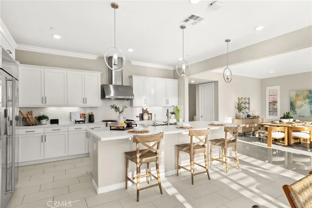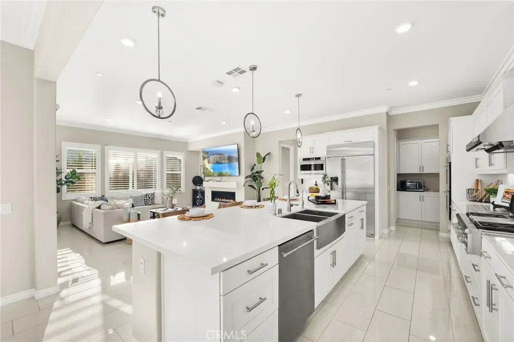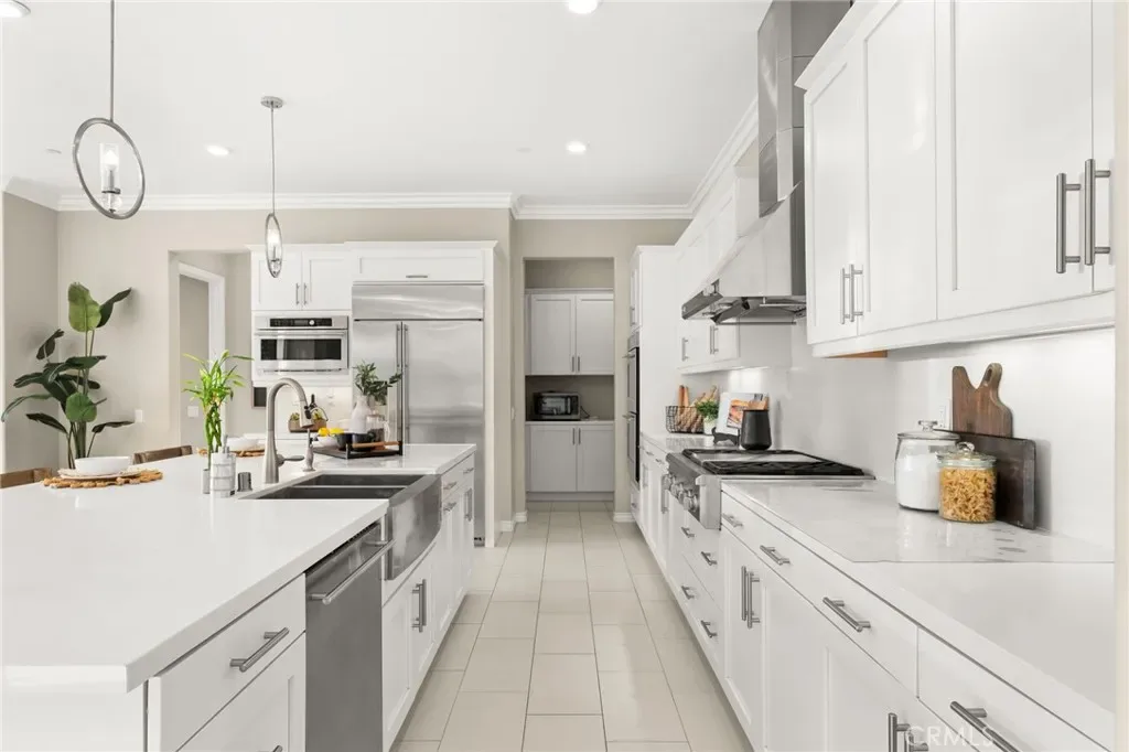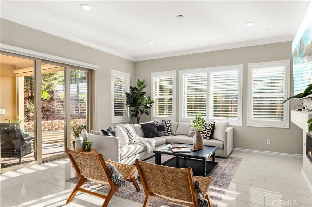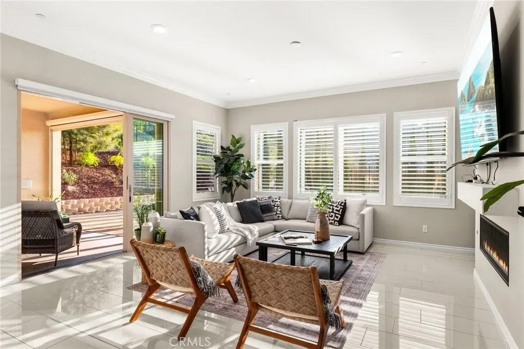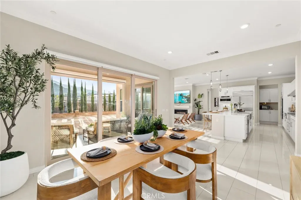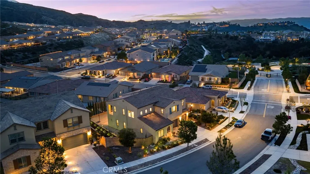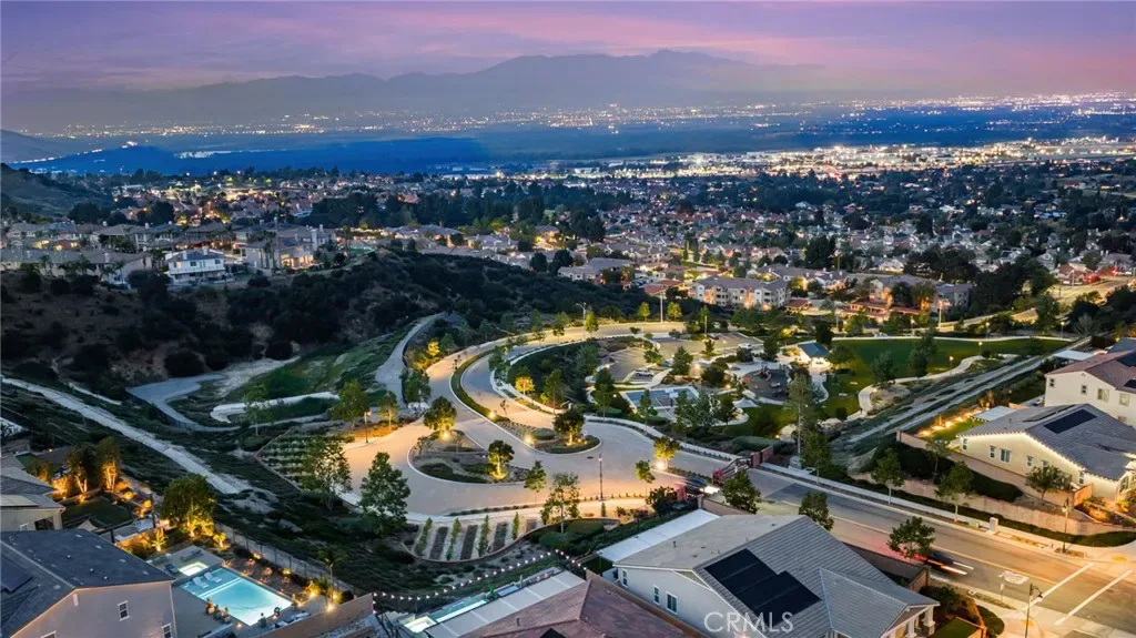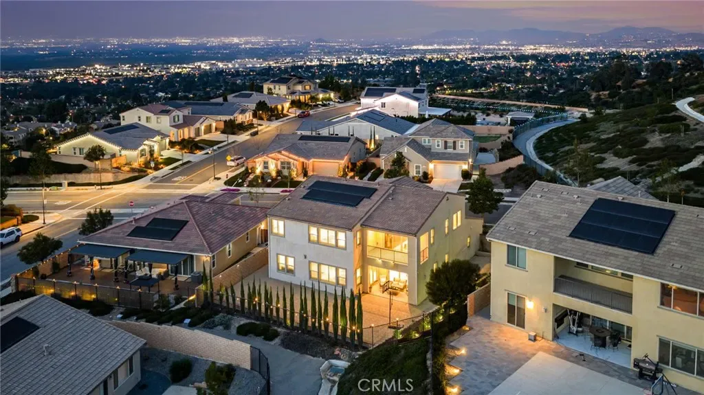 Hidden within the gated hilltop community of Sierra Bella, 2413 Sierra Bella Drive offers a refined blend of luxury, comfort, and functionality. Surrounded by rolling hills and filled with natural light, this home provides a serene setting with the added benefit of private, controlled access. Spanning approximately 3,662 square feet, the residence features 5 bedrooms, 4.5 bathrooms, a formal office, and a versatile loft. Upon entry, soaring two story ceilings and an open layout create a seamless flow between the great room, dining area, and kitchen, ideal for both everyday living and entertaining. The kitchen is bright and clean lined, featuring Monogram appliances, a built in refrigerator, designer pendant lighting, an oversized center island, and Quartz countertops throughout the home. Just off the dining area, the backyard patio showcases a fireplace and automatic motorized blinds, creating a comfortable indoor outdoor living experience. The backyard is designed with low maintenance oversized pavers, offering a modern aesthetic and a blank canvas for future additions such as a pool or expanded outdoor space. The main level includes a private guest suite, dedicated home office, and powder bath. Upstairs, a spacious loft with a balcony provides additional living or flex space. The primary suite captures scenic hill views and flows into a well appointed bathroom with dual vanities, soaking tub, separate shower, private water closet, and a generous walk in closet. Three additional bedrooms and two bathrooms complete the upper level. Additional features include a paid off sixteen panel solar system, Tesla EV charger, water softener and filtration system, tankless water heater, a three car garage, and plantation shutters throughout. Residents of Sierra Bella enjoy panoramic views of city lights, surrounding hills, and snow capped Mount Baldy, along with access to a private community park and a public park just outside the gates. Convenient commuter access via Green River Road places you just one exit from Orange County, Yorba Linda, and Anaheim Hills, with easy connectivity to the 91, 71, and 15 freeways, as well as the 241 Toll Road.