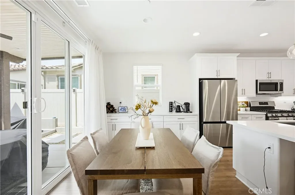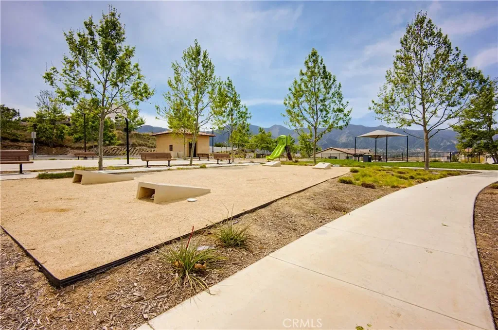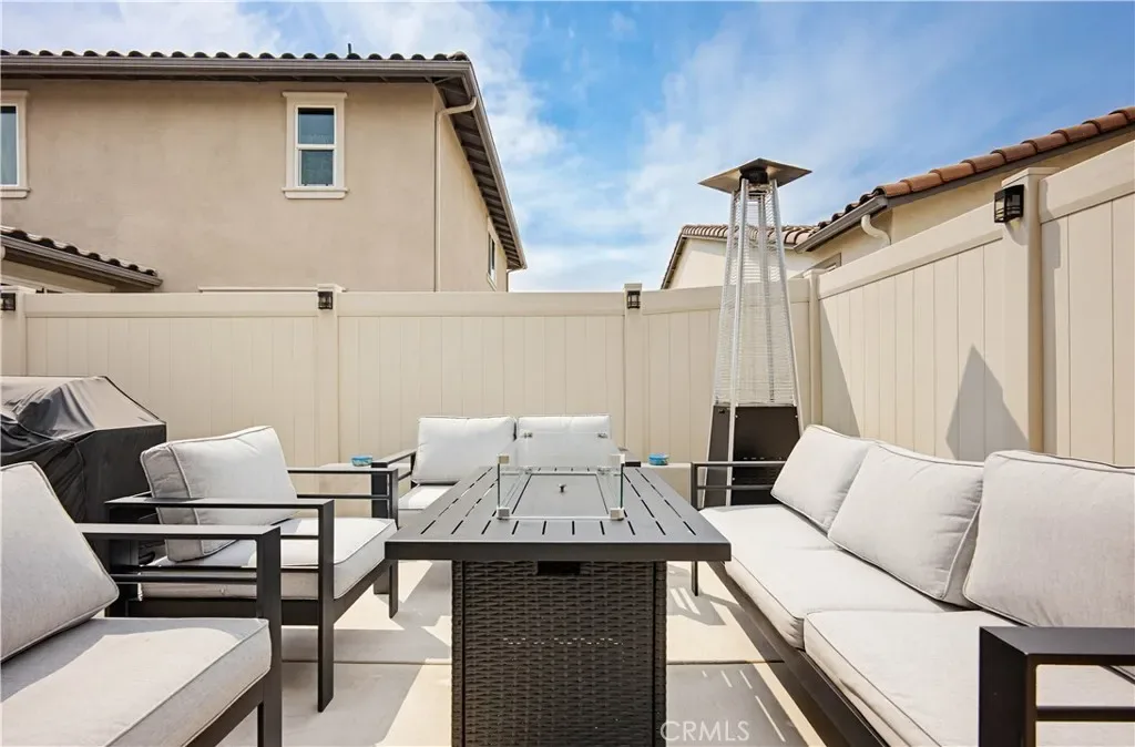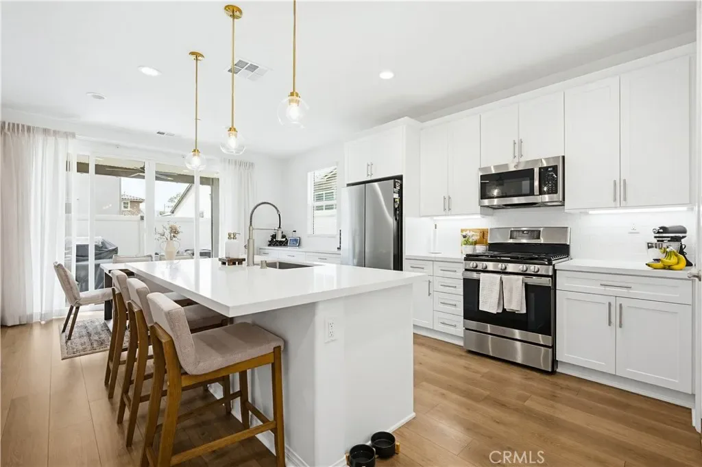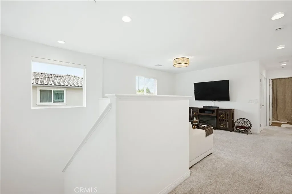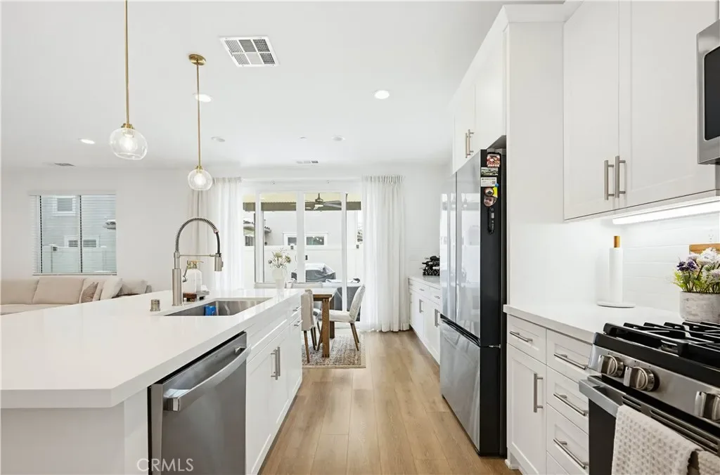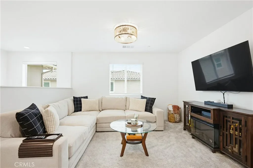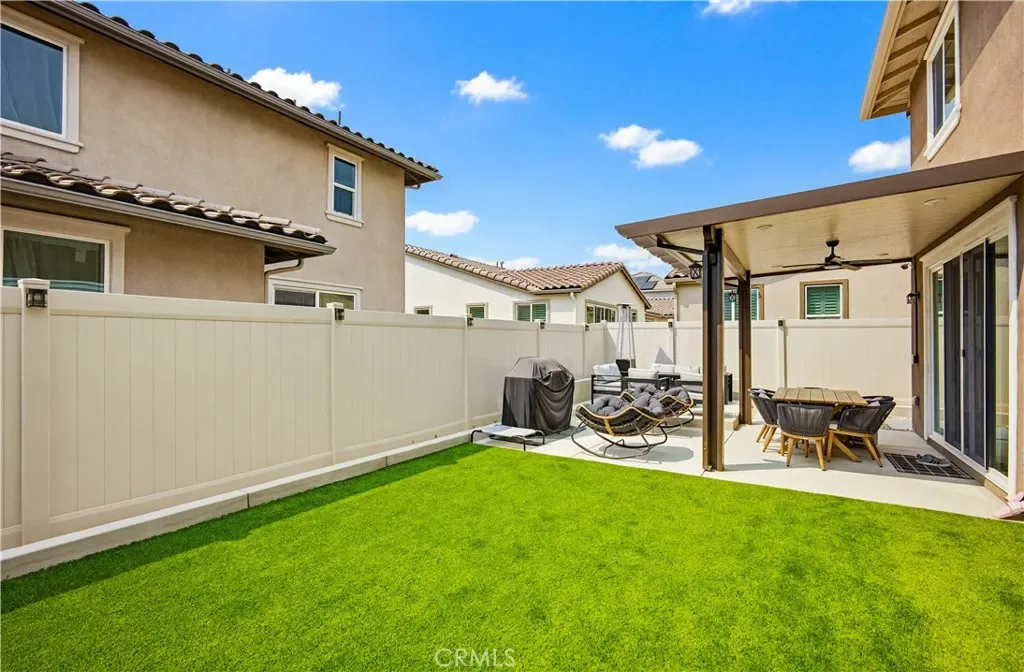 Ideally located in the peaceful and family friendly gated community of Terramor, nestled up to the Estelle Mountain Reserve, this like-new Skyview at Terramor beauty built in 2024, is model perfect and move in ready! Step inside and soak in the light and bright interior spaces with a neutral Pebble Beach palette, sleek Beachwalk Collective Outerbanks wood laminate floors, and curated interior features throughout the open concept floor plan creating a superb living environment. The sparkling kitchen boasts white Thermofoil Vinyl soft close cabinetry, Miami Vena Quartz countertops, Ice Glass subway tile backsplash, Brushed Nickel hardware and pulls, Stainless-Steel Appliances, Antoni Spotless Stainless Faucet, undermount Stainless-Steel sink, coffee bar, large kitchen island, pendant lighting, and breakfast bar, all open to the dining and the living room with direct access through the sliding doors to the backyard patio, providing an ideal indoor-outdoor living space. Travel up the light filled stairway to the second level featuring a bonus open loft space perfect for a media room, library, den/rec room, or teen hangout. The primary bedroom suite is a private retreat with recessed lighting, a walk-in closet, and a spacious primary bathroom with Piedrafina Cultured Marble topped dual vanity, Saylor Stainless Steel Faucets, Logan Square Petite undermount sinks, Maxwell Comfort Height Toilet, and large walk-in shower. Spacious secondary bedrooms with custom light fixtures, a full guest bath with like finishes, and a convenient bedroom level laundry room with full-size washer and dryer hookups complete the upper level. The spacious backyard is a fully enclosed oasis with covered patio, raised hardscape and seating areas, easy care and water conscious artificial turf, and vinyl fencing. Perfect for entertaining and relaxing with friends and family. Home includes cost saving SunPower Solar System, and a convenient direct access 2 car garage. Resort like community amenities include guard gated entrance, The Terrace Club which includes Clubhouse, Gym & Wellness Studio, Bocce Ball, Tennis & Pickleball Courts, Multipurpose rooms, outdoor cooking area, outdoor Pool and Hot Tub, Indoor Pool, Crafts Room, Outdoor Fireplace, Pavilion with Bar, Locker Rooms, Saunas, and more! Located close to nearby Terramor Commons with playground and dog park, and numerous hiking and biking trails. Close to shopping, dining, golfing, Glen Ivy Hot Springs, and easy 15 Freeway access.