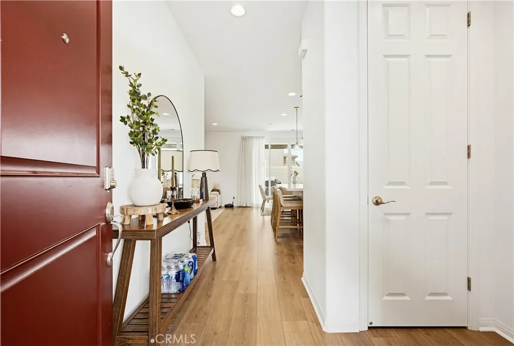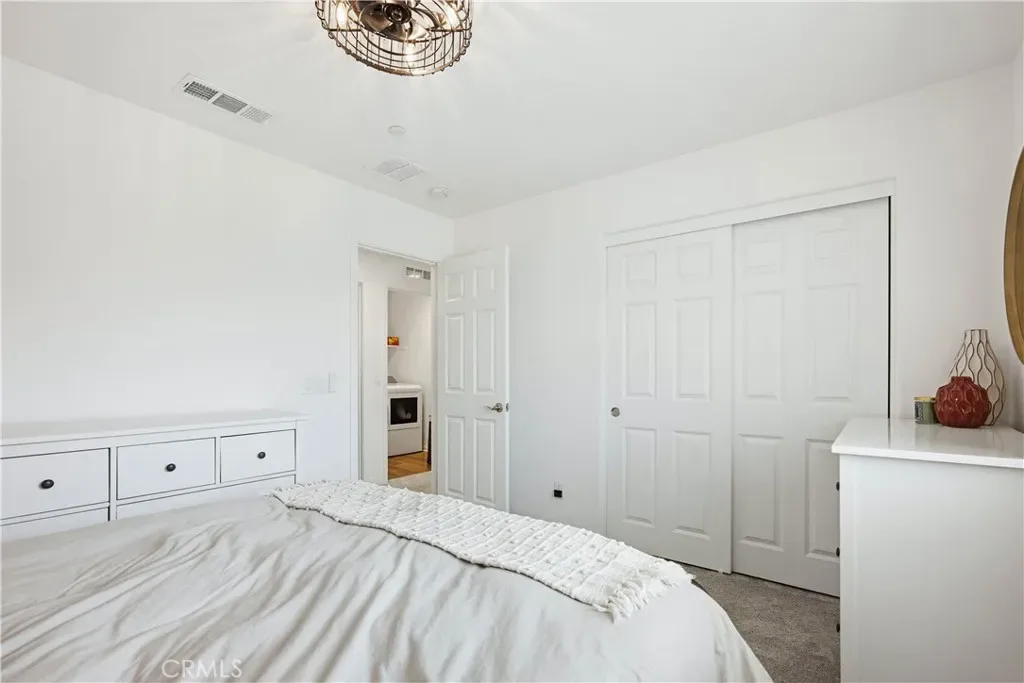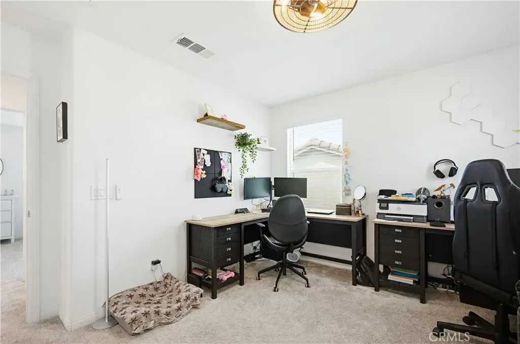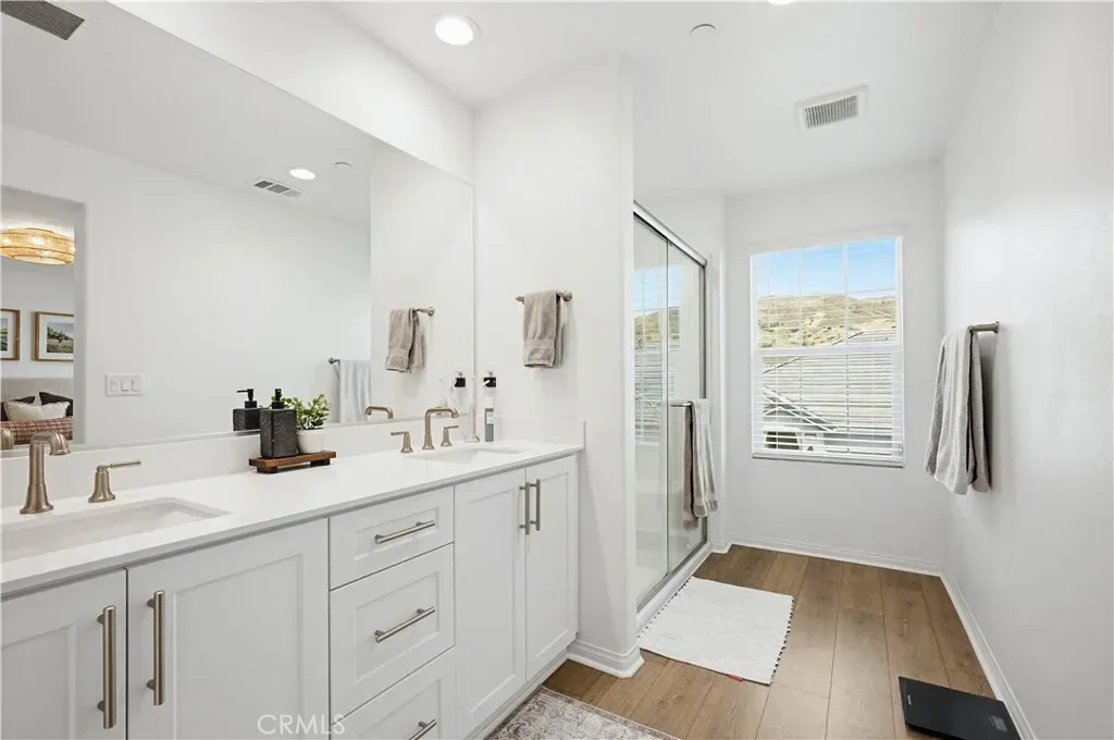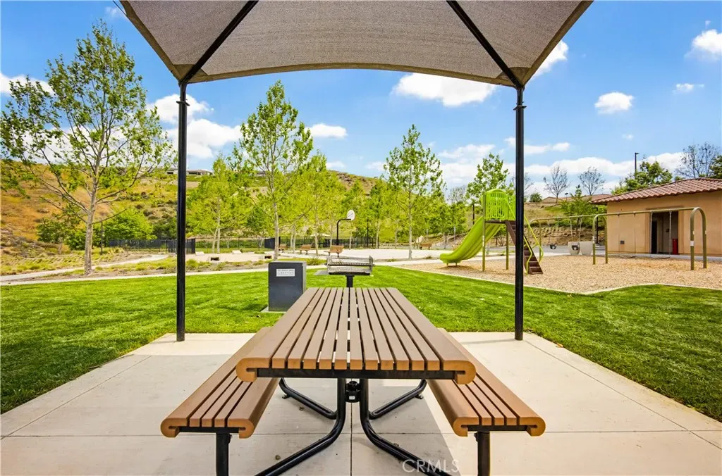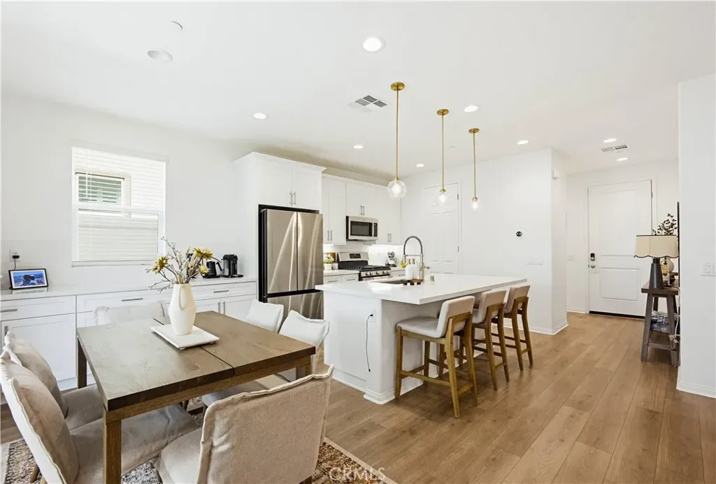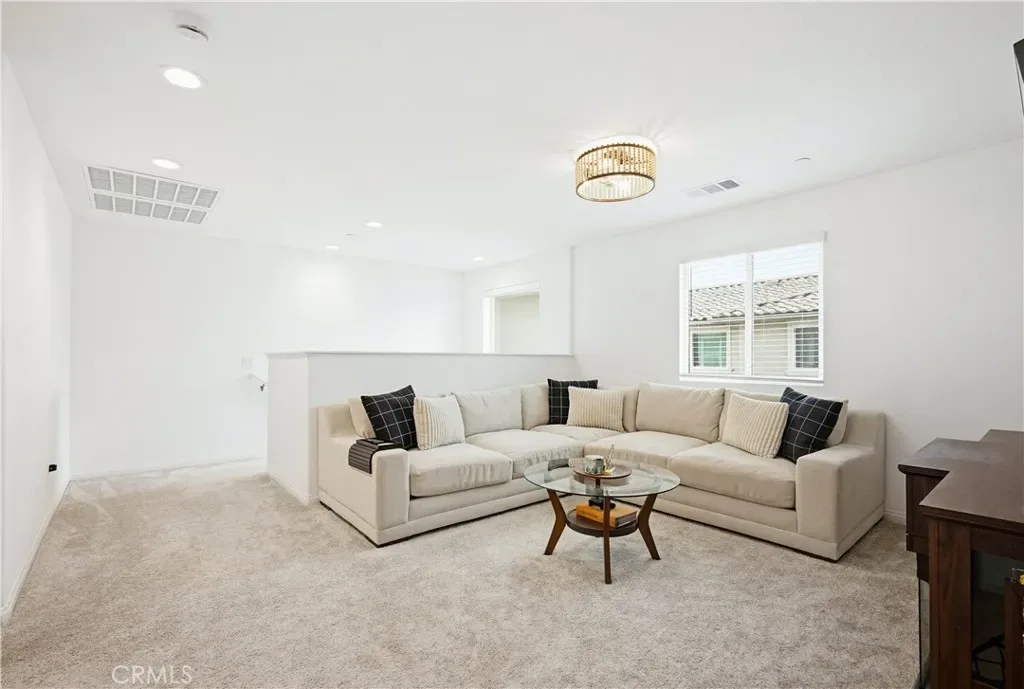 Ideally located in the peaceful and family friendly gated community of Terramor, nestled up to the Estelle Mountain Reserve, this like-new Skyview at Terramor beauty built in 2024, is model perfect and move in ready! Step inside and soak in the light and bright interior spaces with a neutral Pebble Beach palette, sleek Beachwalk Collective Outerbanks wood laminate floors, and curated interior features throughout the open concept floor plan creating a superb living environment. The sparkling kitchen boasts white Thermofoil Vinyl soft close cabinetry, Miami Vena Quartz countertops, Ice Glass subway tile backsplash, Brushed Nickel hardware and pulls, Stainless-Steel Appliances, Antoni Spotless Stainless Faucet, undermount Stainless-Steel sink, coffee bar, large kitchen island, pendant lighting, and breakfast bar, all open to the dining and the living room with direct access through the sliding doors to the backyard patio, providing an ideal indoor-outdoor living space. Travel up the light filled stairway to the second level featuring a bonus open loft space perfect for a media room, library, den/rec room, or teen hangout. The primary bedroom suite is a private retreat with recessed lighting, a walk-in closet, and a spacious primary bathroom with Piedrafina Cultured Marble topped dual vanity, Saylor Stainless Steel Faucets, Logan Square Petite undermount sinks, Maxwell Comfort Height Toilet, and large walk-in shower. Spacious secondary bedrooms with custom light fixtures, a full guest bath with like finishes, and a convenient bedroom level laundry room with full-size washer and dryer hookups complete the upper level. The spacious backyard is a fully enclosed oasis with covered patio, raised hardscape and seating areas, easy care and water conscious artificial turf, and vinyl fencing. Perfect for entertaining and relaxing with friends and family. Home includes cost saving SunPower Solar System, and a convenient direct access 2 car garage. Resort like community amenities include guard gated entrance, The Terrace Club which includes Clubhouse, Gym & Wellness Studio, Bocce Ball, Tennis & Pickleball Courts, Multipurpose rooms, outdoor cooking area, outdoor Pool and Hot Tub, Indoor Pool, Crafts Room, Outdoor Fireplace, Pavilion with Bar, Locker Rooms, Saunas, and more! Located close to nearby Terramor Commons with playground and dog park, and numerous hiking and biking trails. Close to shopping, dining, golfing, Glen Ivy Hot Springs, and easy 15 Freeway access.