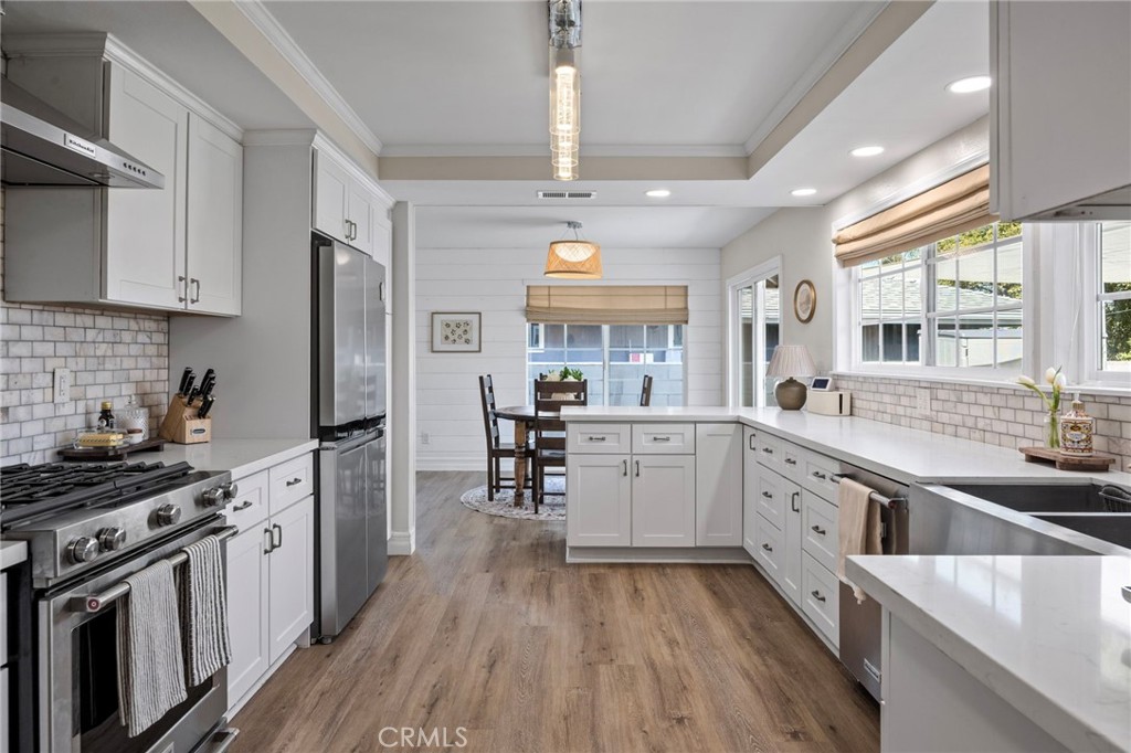 Experience the height of sophisticated single-story living in this beautiful California bungalow, a meticulously curated four bedroom, two bath South Corona home situated just minutes from the Orange County border. Spanning approximately 2,034 square feet of refined living space, the residence greets you with grand double doors that open to a luminous interior featuring designer LVP flooring, custom window trim, and elegant Roman shades throughout.